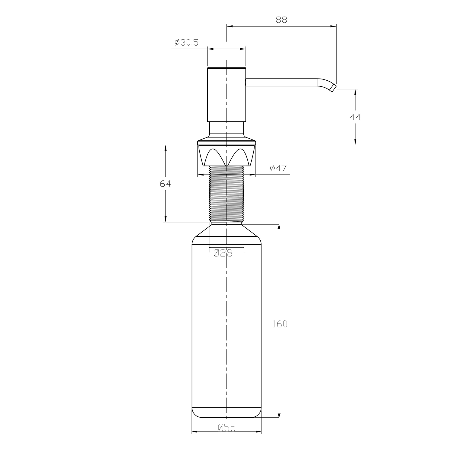 SP010 Beépíthető szappanadagoló, 350ml, inox