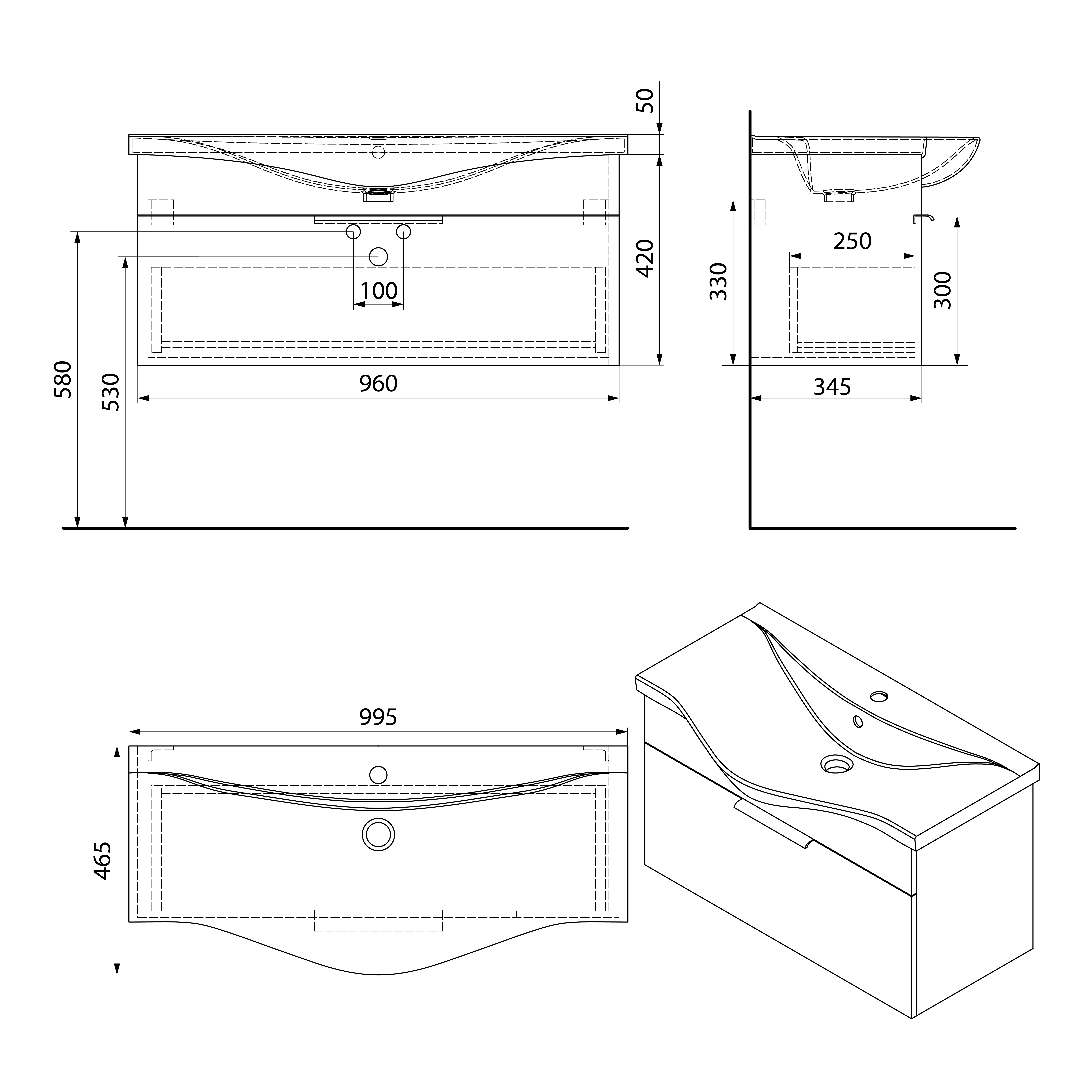 AK210 AQUALINE AKIRA mosdótartó szekrény fogantyú nélkül, 96x42x34,5cm