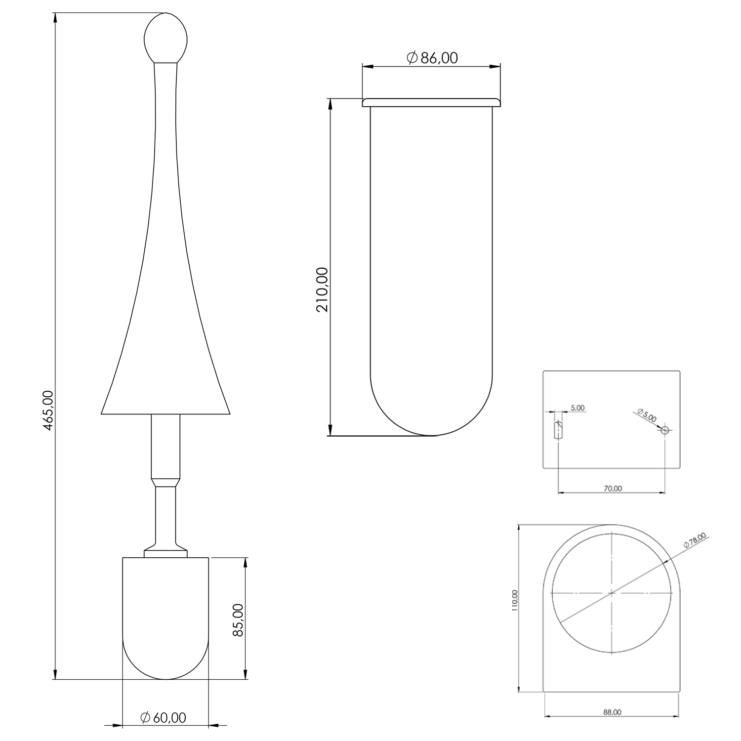 A65801NE COLORED fali WC kefetartó, ABS, matt fekete