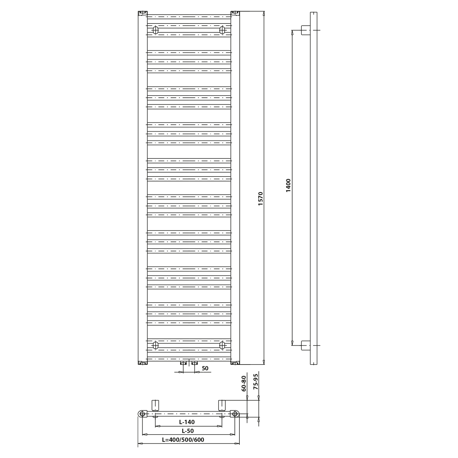600.118.4 BRUCKNER ALBRECHT fürdőszobai radiátor, 600x1570mm