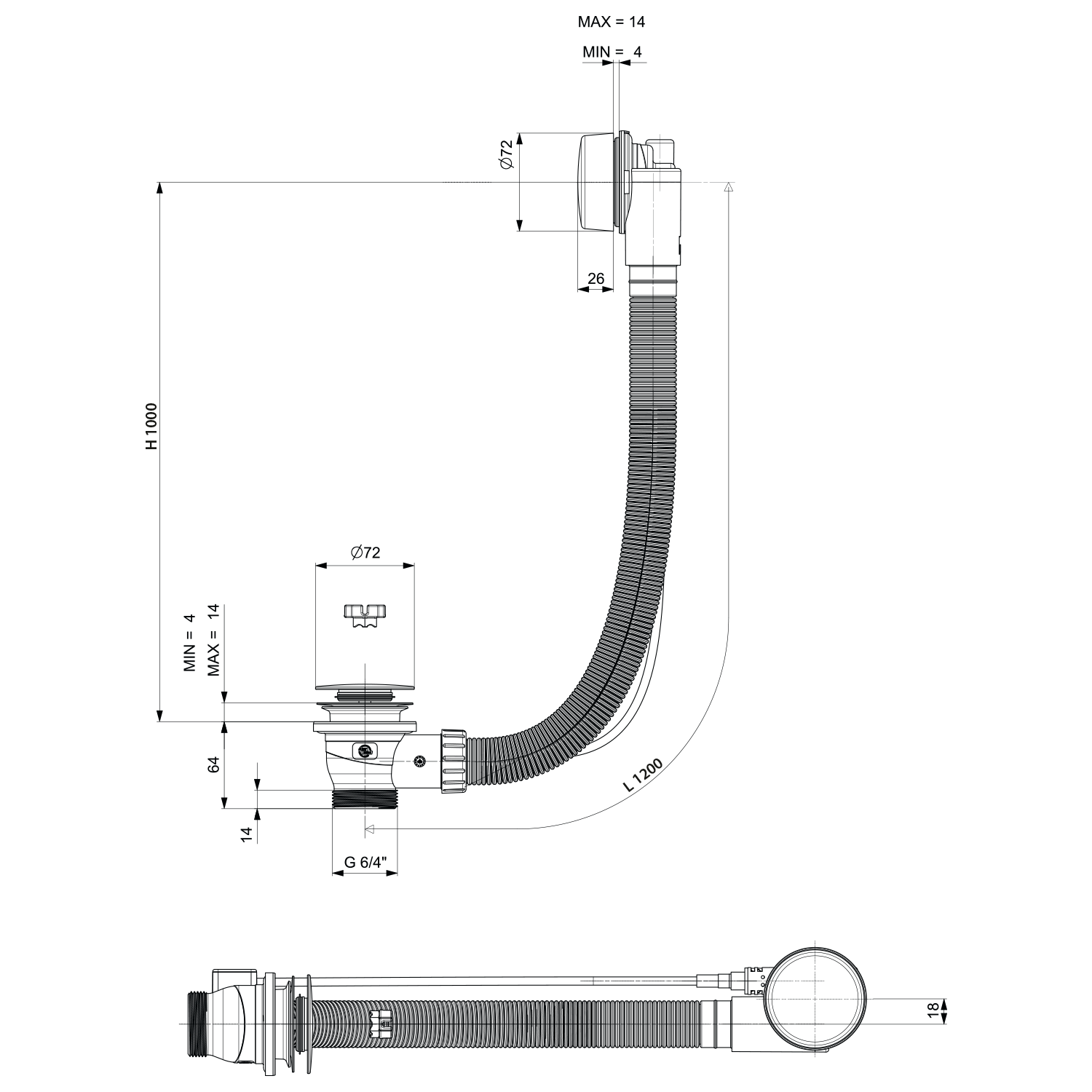 POLYSAN kád le- és túlfolyó, bovdenes, 1200mm, átm.:72mm, fehér (71856.10)
