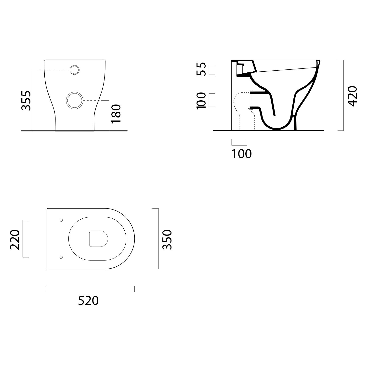 The shape of the bowl allows for efficient and effective flushing with less water, thus saving the environment and water costs. Flush saving can be used with a flushing mechanism (in the cistern of a close coupled toilet or the concealed cistern of a wall-hung toilet) whose drain valve allows water volume adjustment from 4 litres. In the case of dual flush, the small button has a volume of 3 litres and the larger button a volume of 4.5 litres.