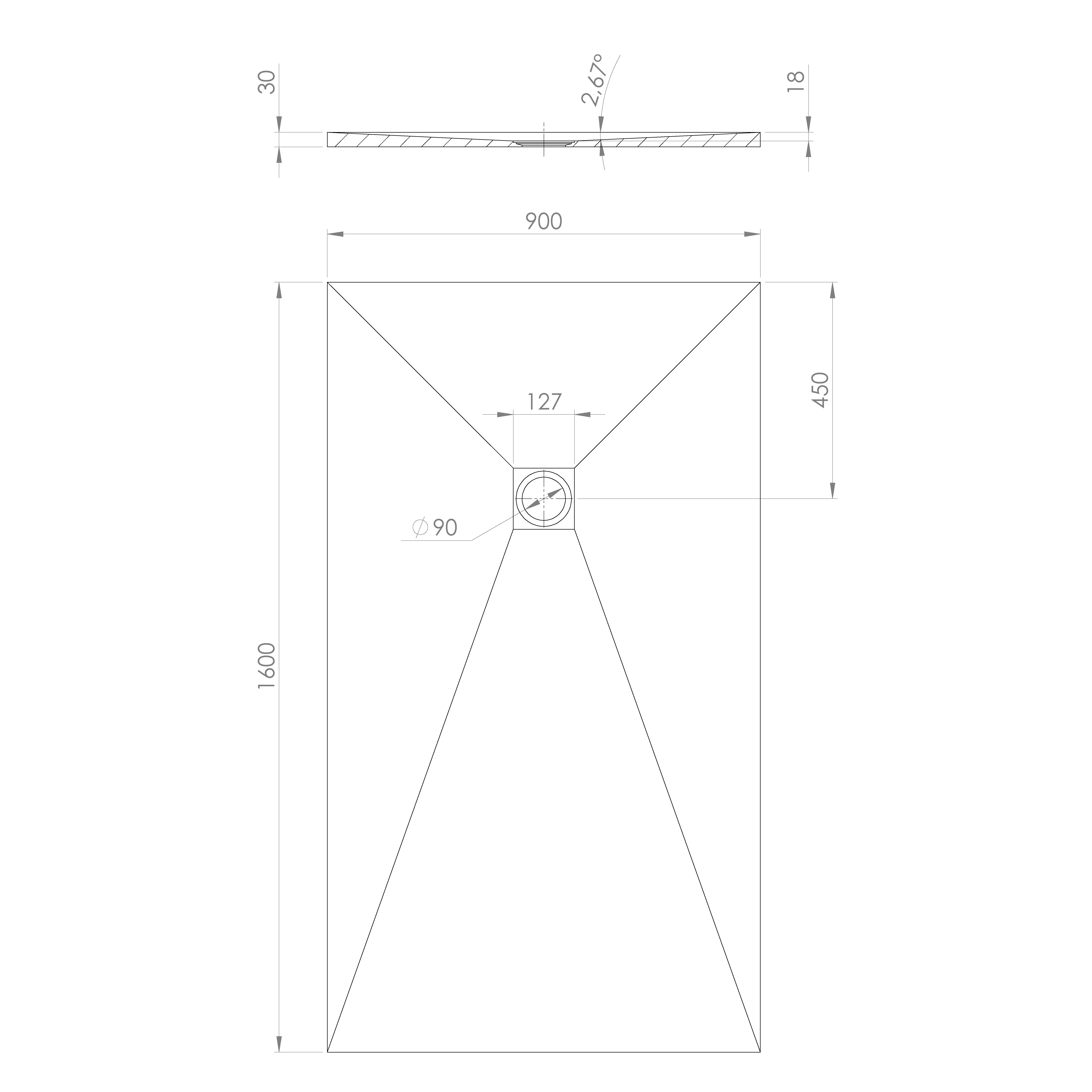 • Rectangular shower trays come in widths from 80 to 100 cm and legths from 90 to 160 cm