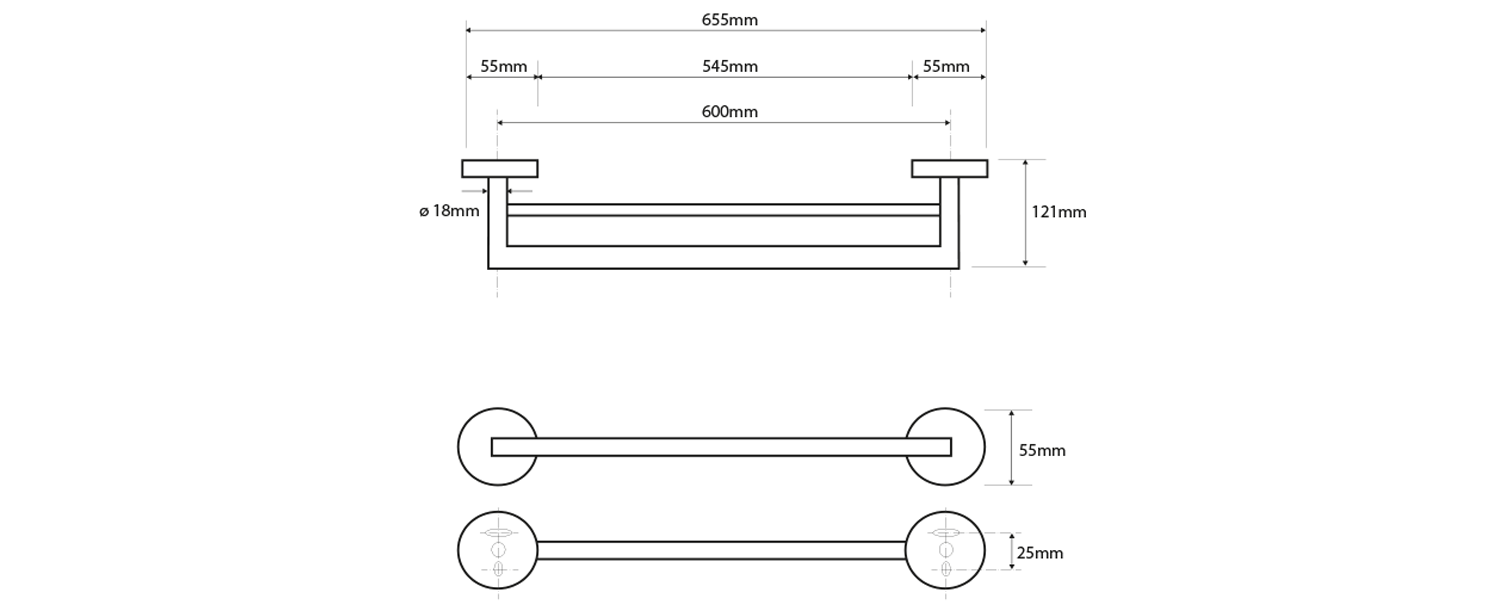 BEMETA OMEGA Törölközőtartó, 655x55x120mm, króm (104204052) (XR401)