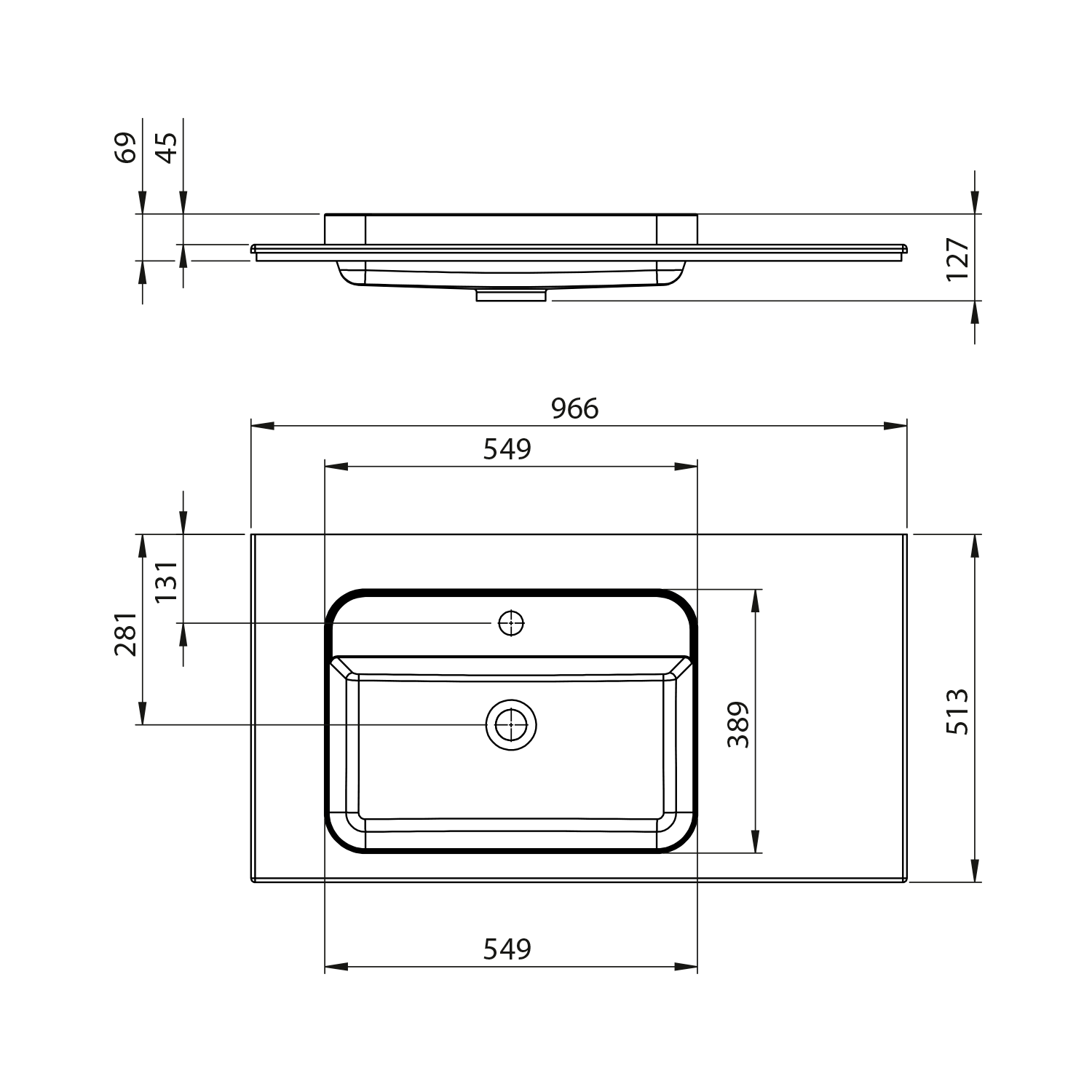 BE755 BRAHEA pultbasüllyeszthető rockstone mosdó, 55x39cm, matt fehér (1db)