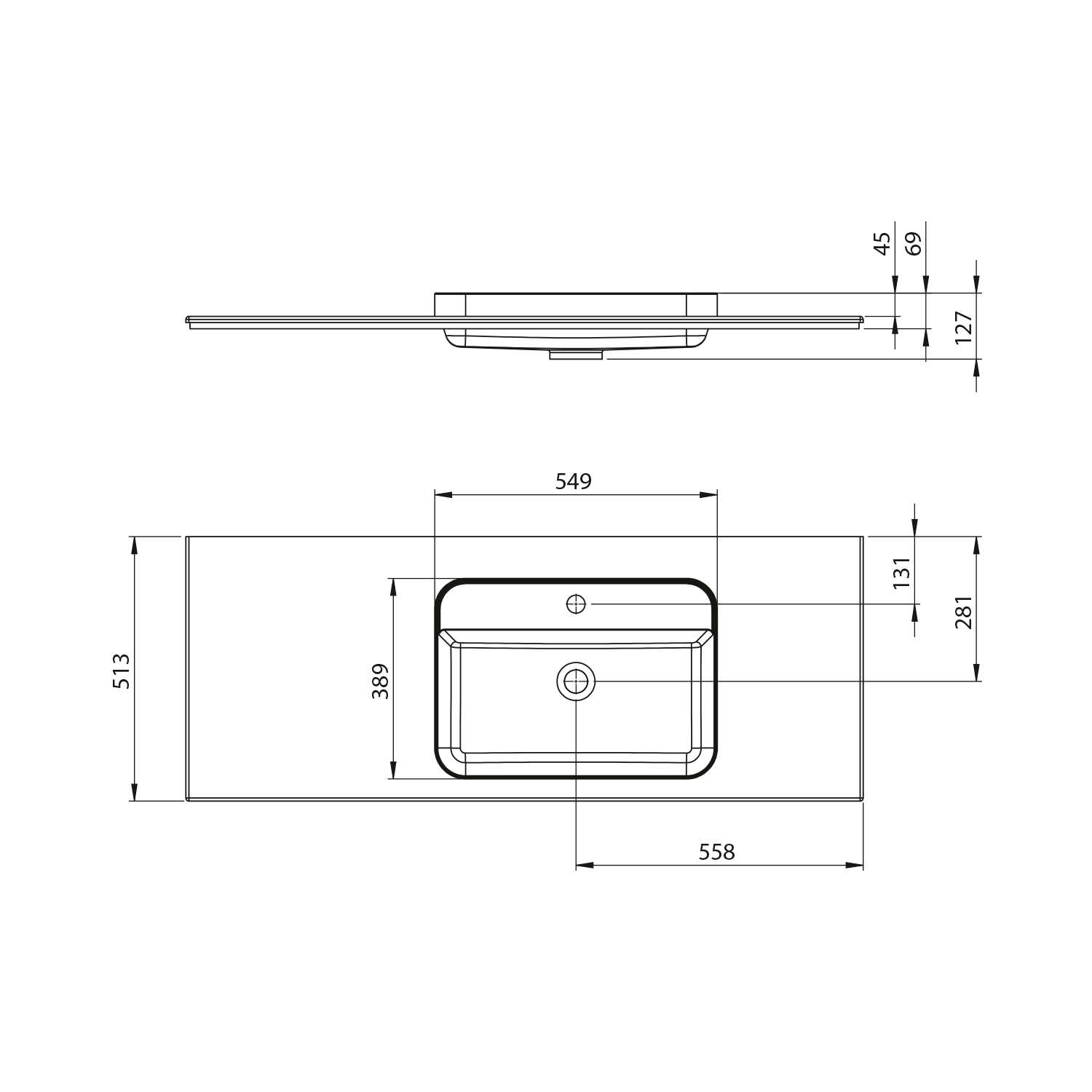 BE755 BRAHEA pultbasüllyeszthető rockstone mosdó, 55x39cm, matt fehér (1db)