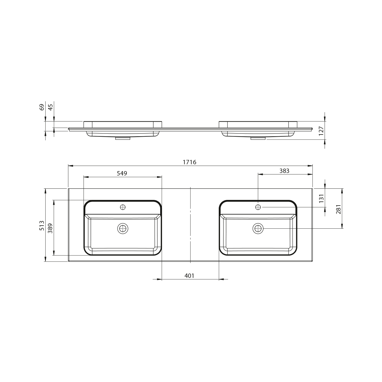 BRAHEA Rockstone duplamosdó és pult, 171,6x51,5cm, Rockstone, matt fehér (BT172)