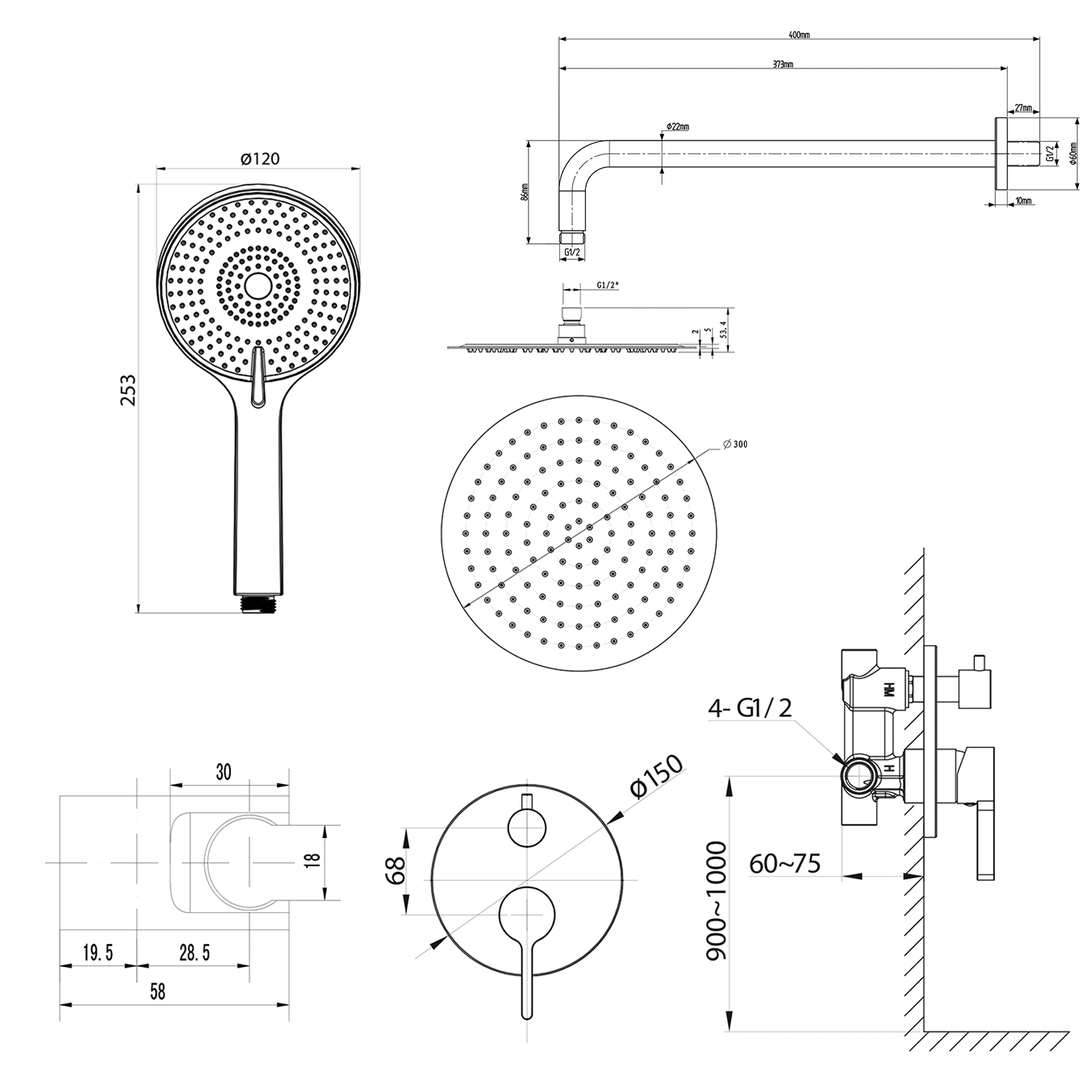 Zuhany jellemzői Eső Masszázs Eső/masszázs
