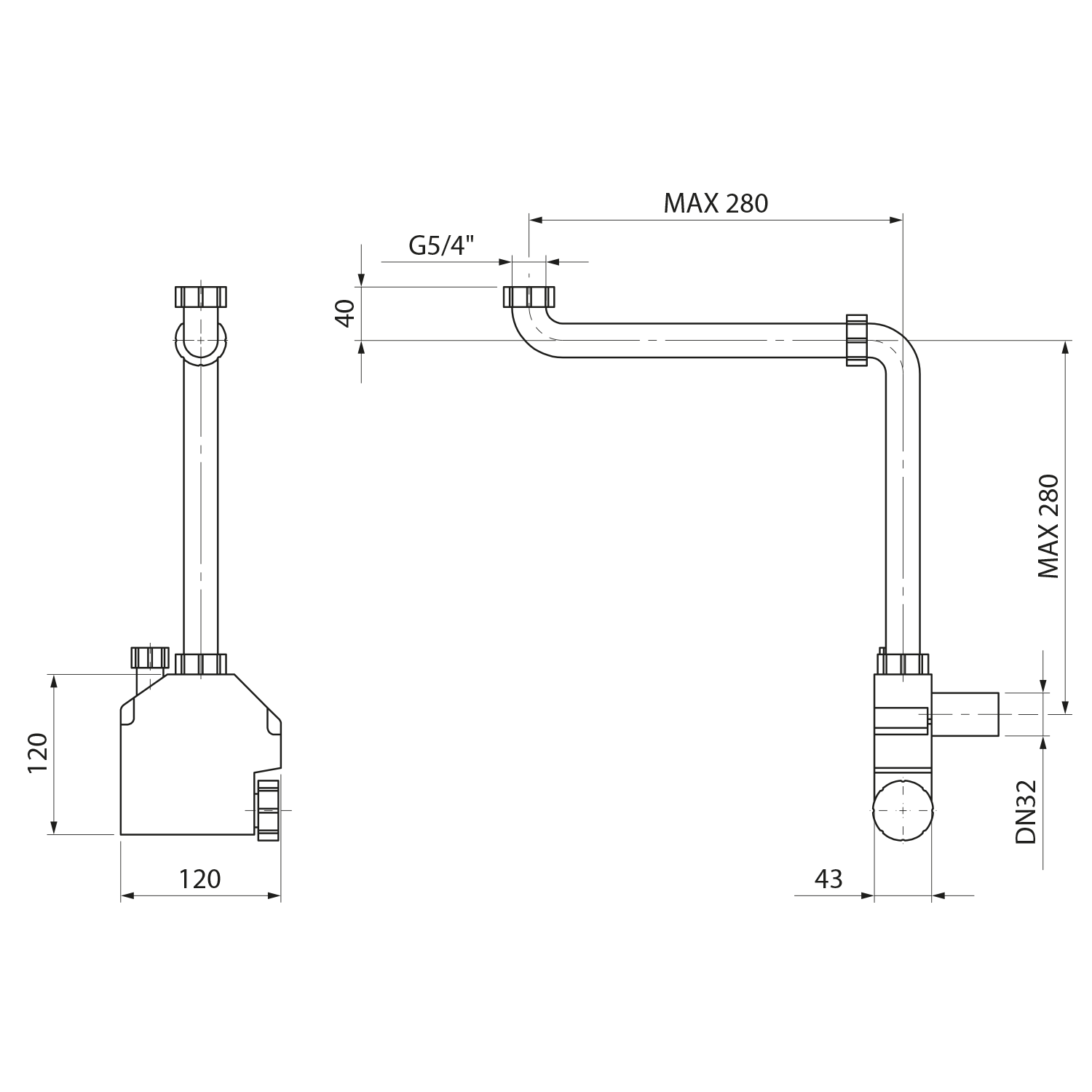This is a system where the pipe under the sink takes the water to the wall before it drains downwards vertically. This solution is suitable, for example, for bathroom furniture where the siphon does not prevent the use of a shelf/drawer, for washbasins with a shelf or washbasins for the physically handicapped.