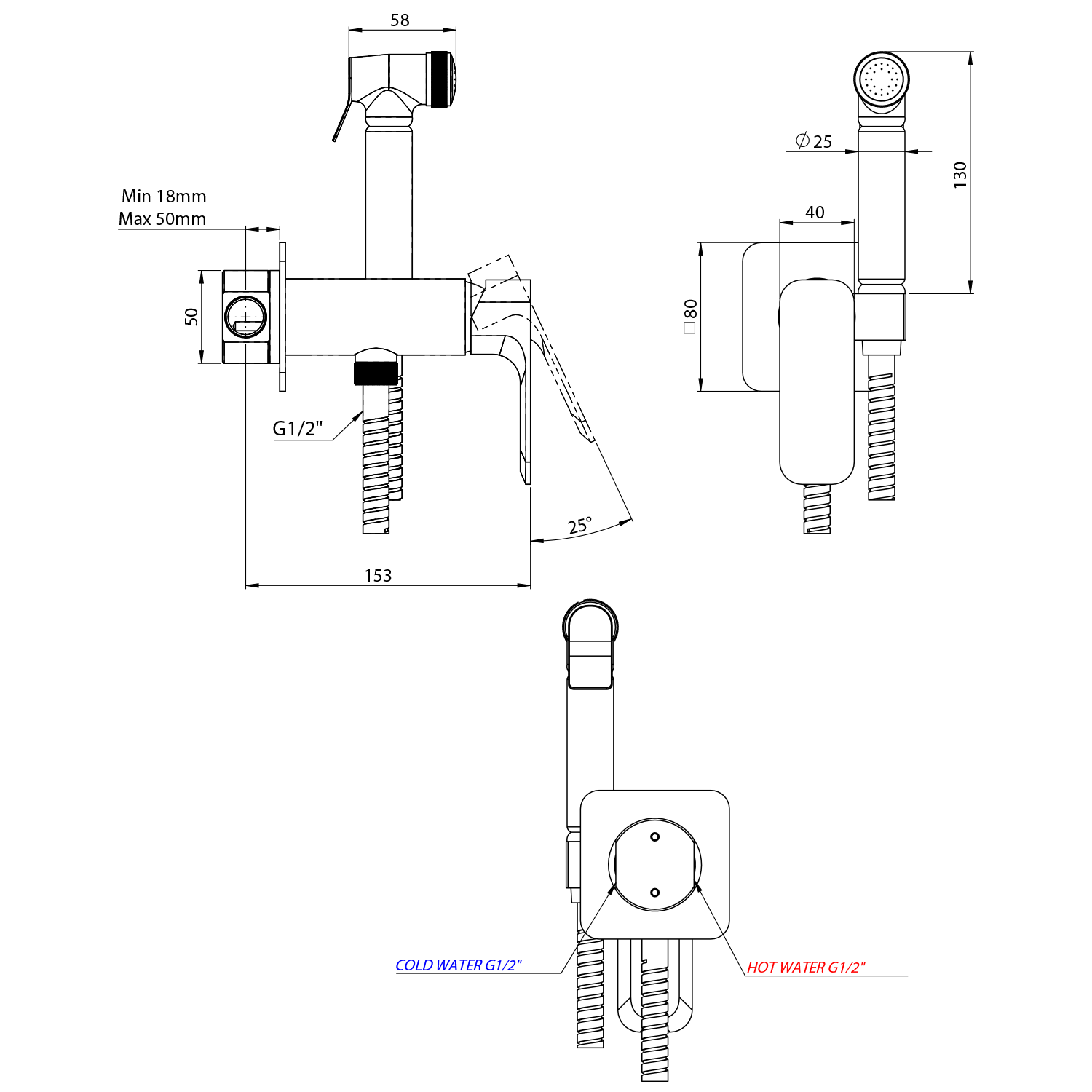 PY13/15 SPY falsík alatti bidézuhany, matt fekete
