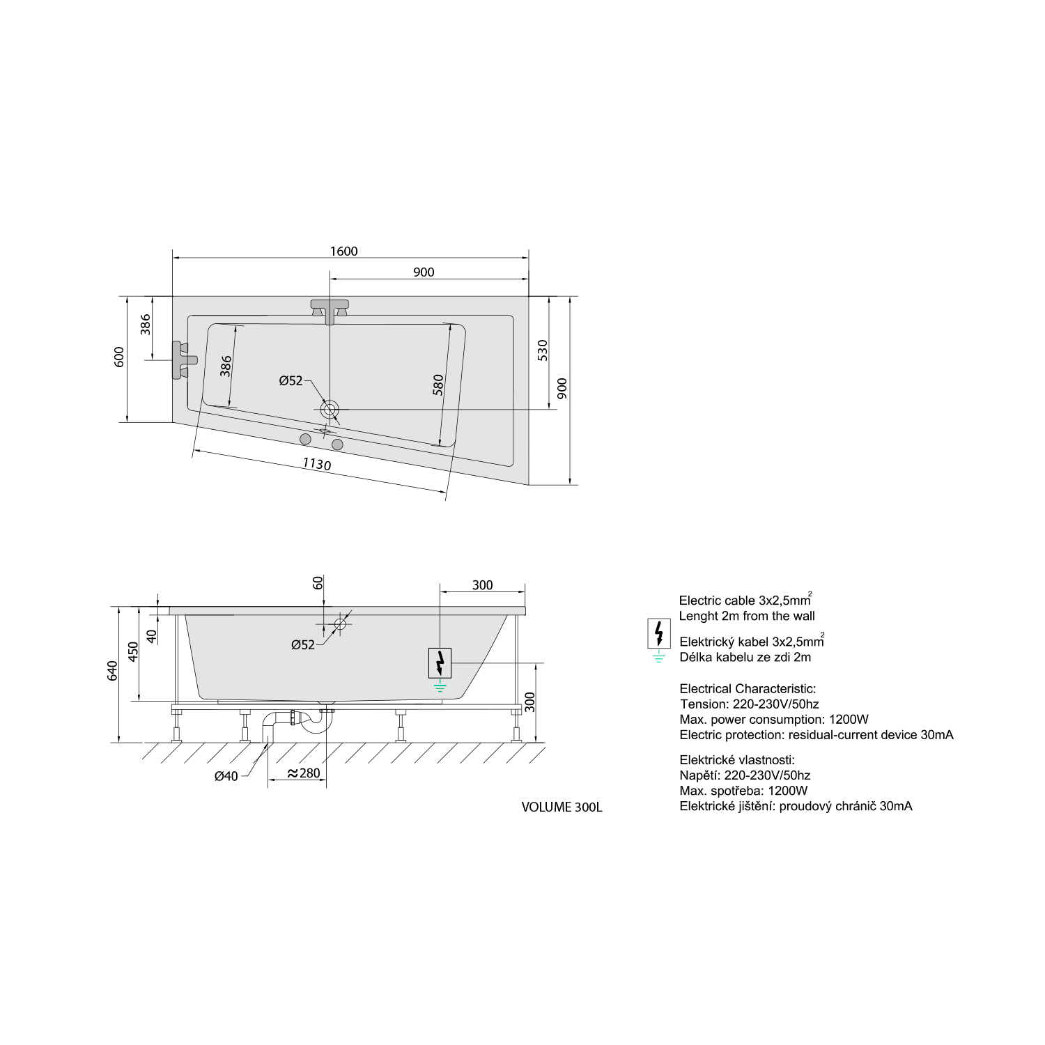 11611.5010 POLYSAN EVIA aszimmetrikus kád, balos, Highline Hydro, 160x100x47cm, króm