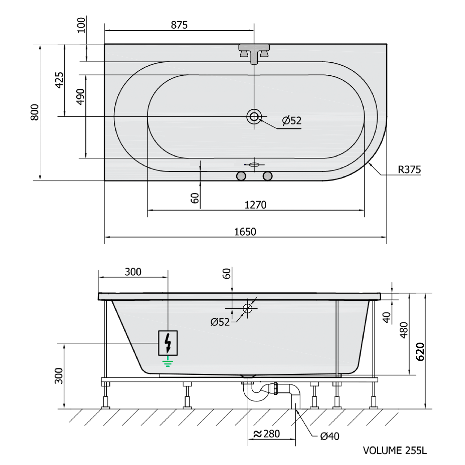 • Easy to install (like standard baths + electric supply)