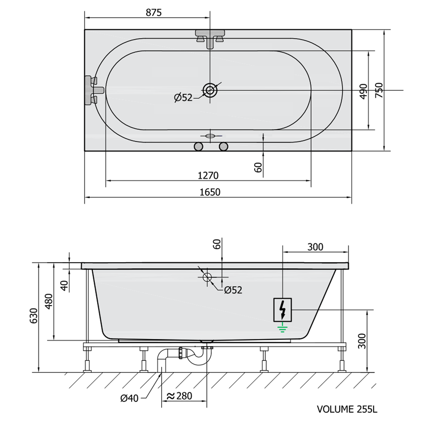 • Easy to install (like standard baths + electric supply)
