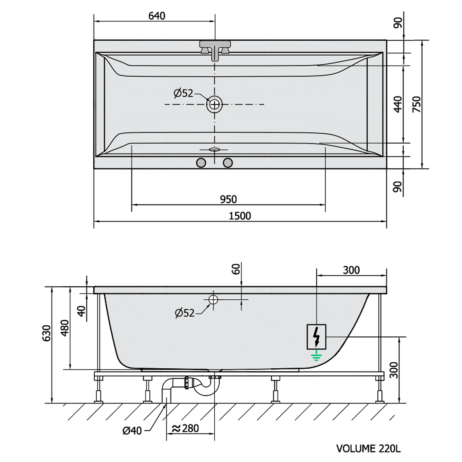 93611.5010 POLYSAN CLEO kád, Highline Hydro, 160x75x48cm, króm