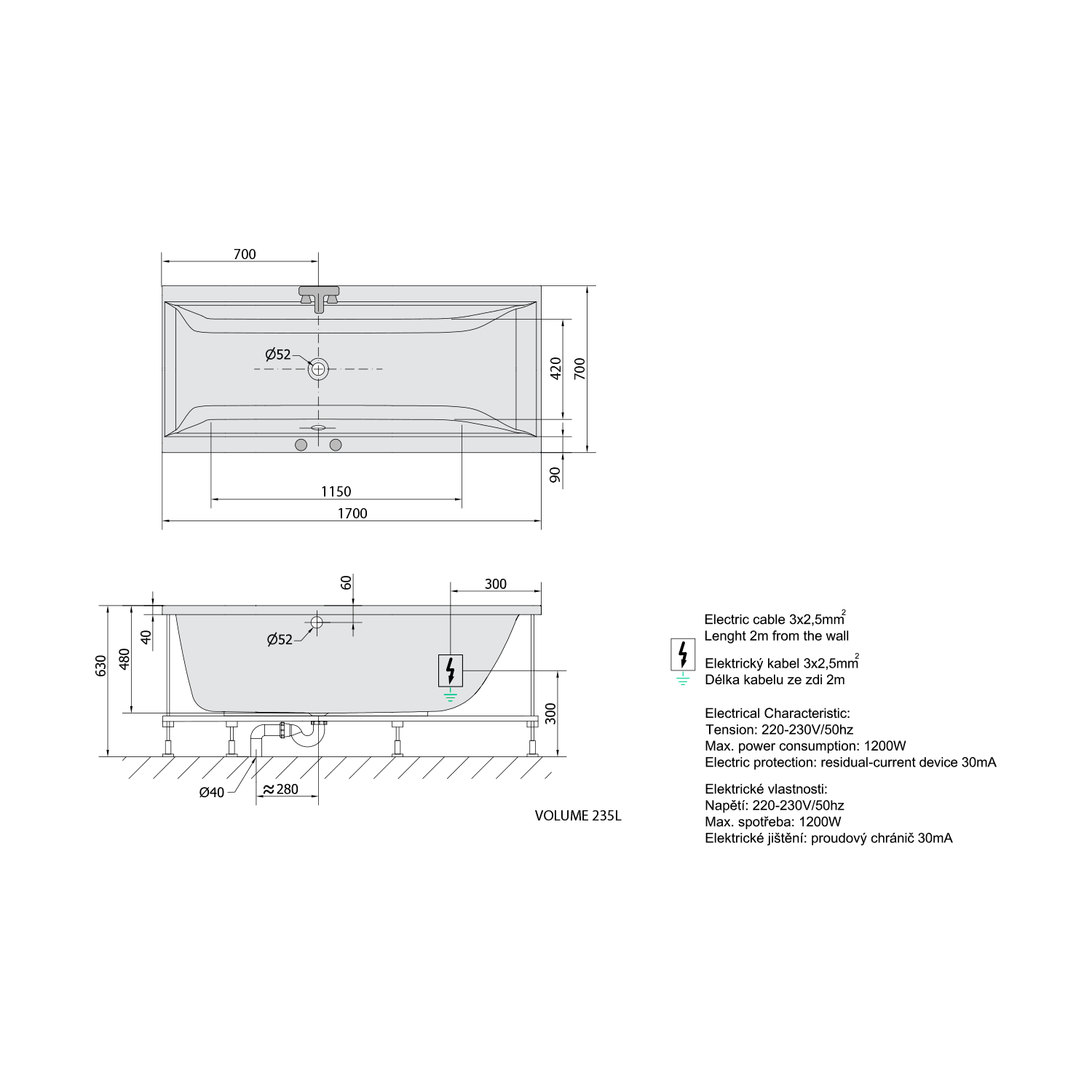 • Power supply 230V/50Hz