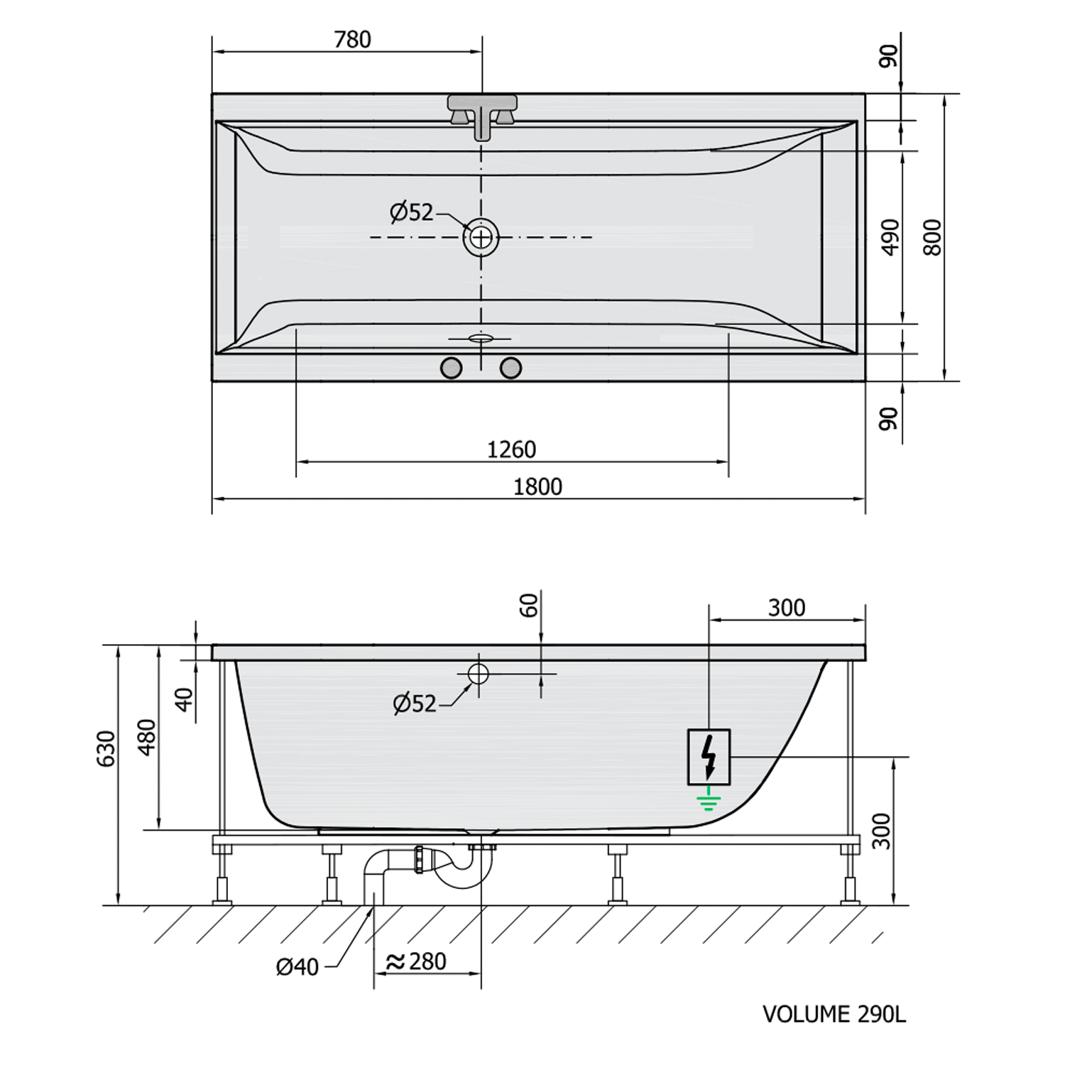 95611.5010 POLYSAN CLEO kád, Highline Hydro, 180x80x48cm, króm