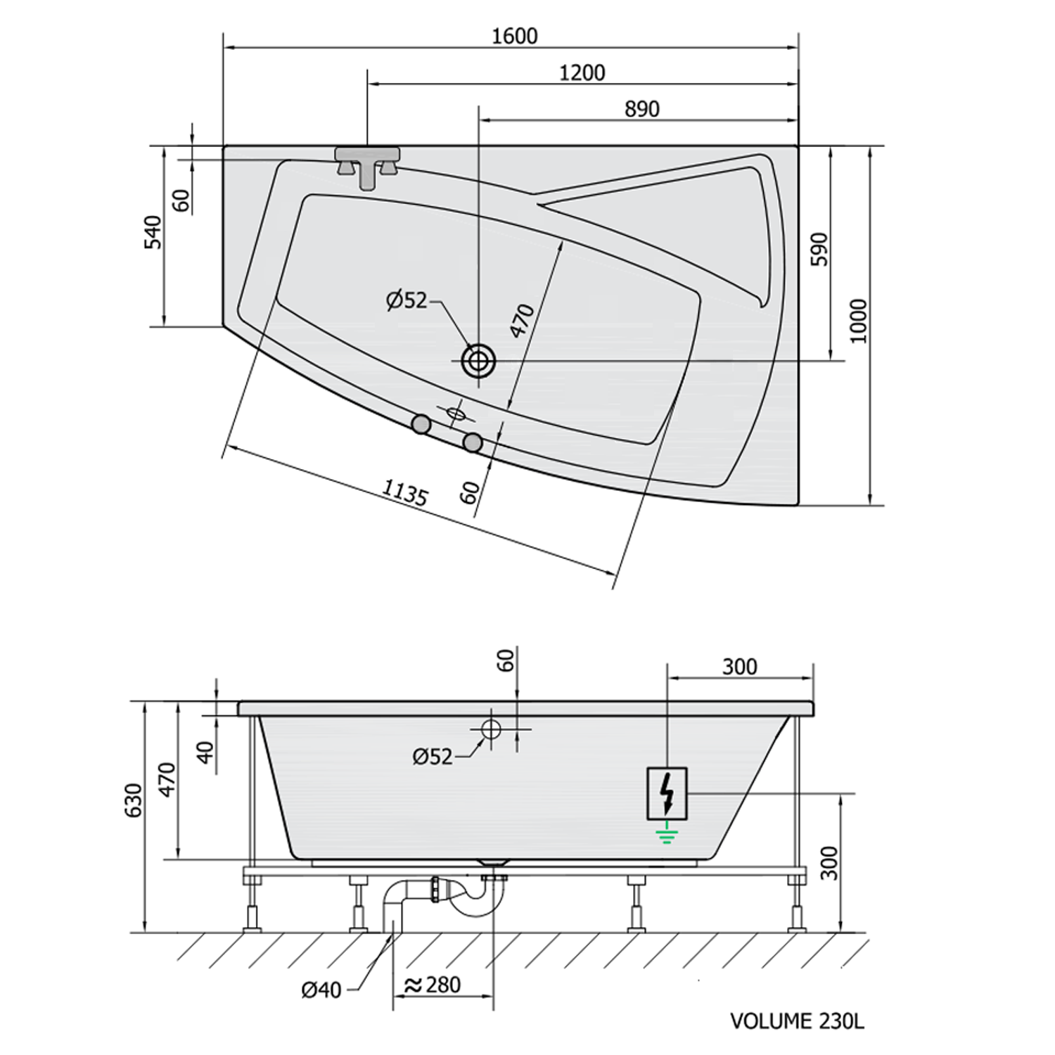The bathtub is equipped with the HYDRO system:
