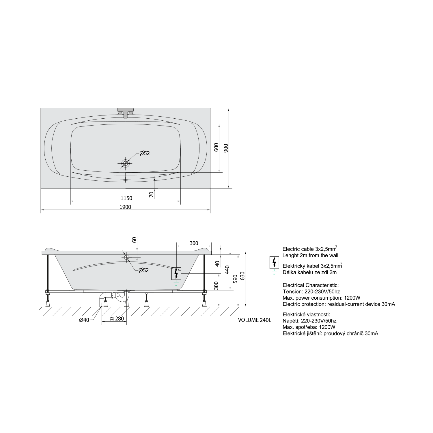 POLYSAN GARDA kád, Attraction Hydro, 190x90x44cm, króm (14111.3010)
