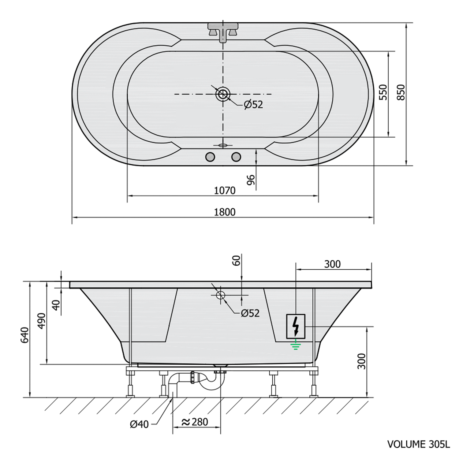 • Easy to install (like standard baths + electric supply)