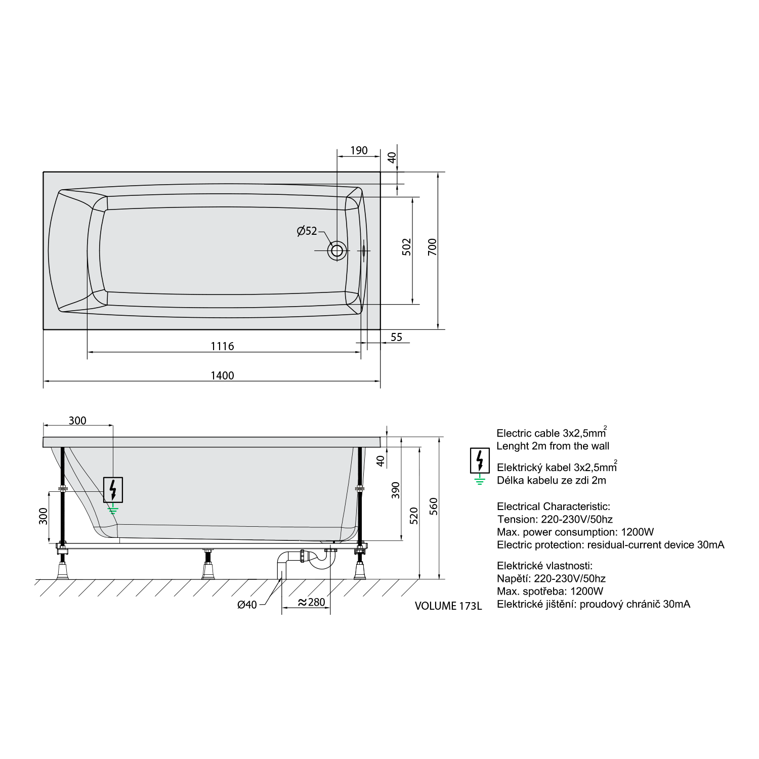 88119.5010 POLYSAN VIVA B kád, Highline Hydro, 175x80x47cm, króm