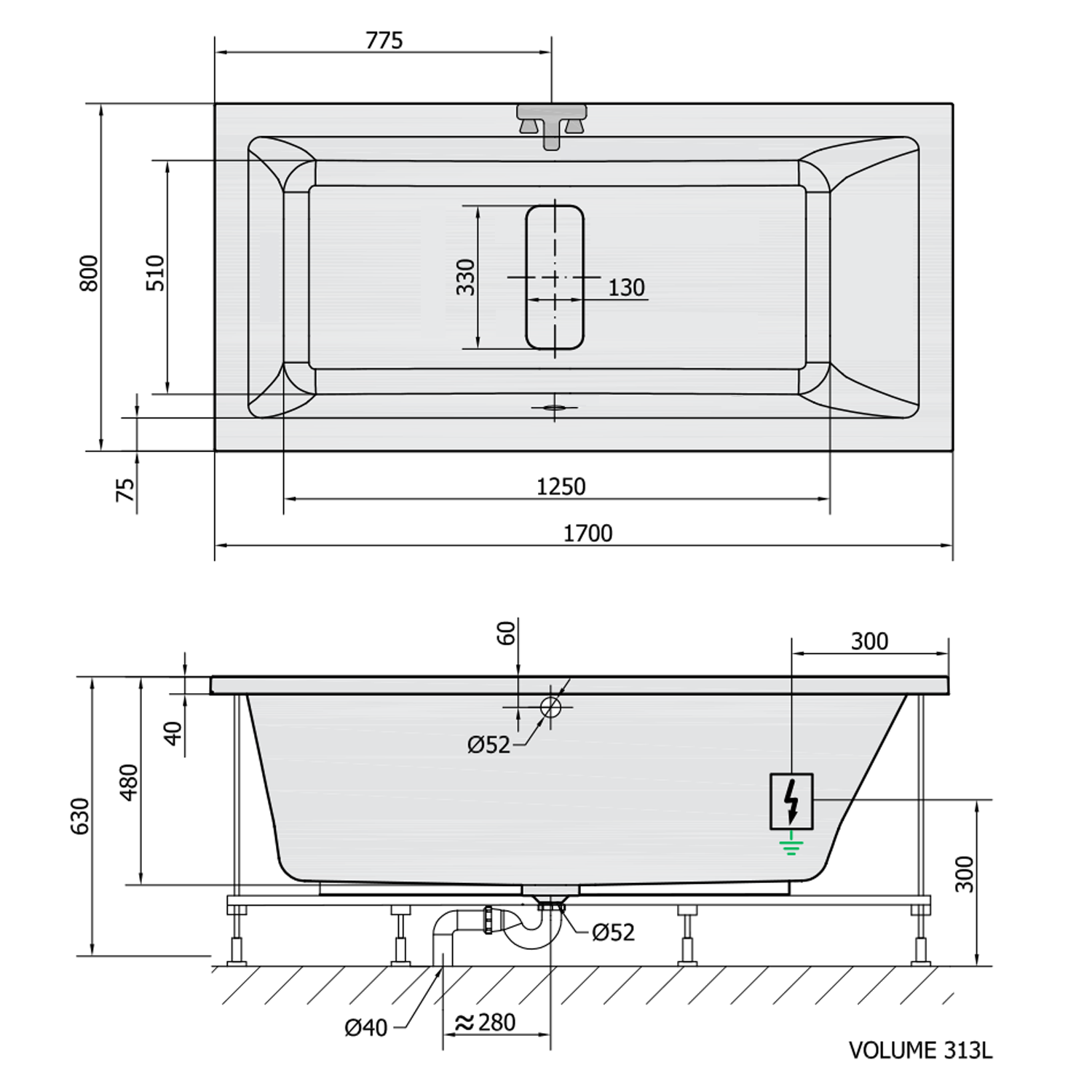88119.5010 POLYSAN VIVA B kád, Highline Hydro, 175x80x47cm, króm