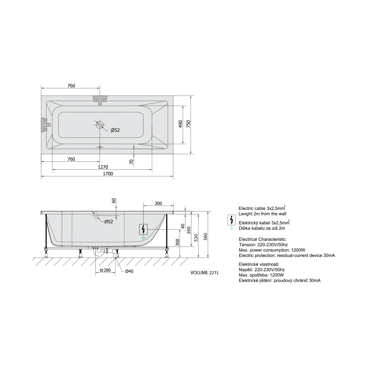 • Easy to install (like standard bathtubs + electric supply)