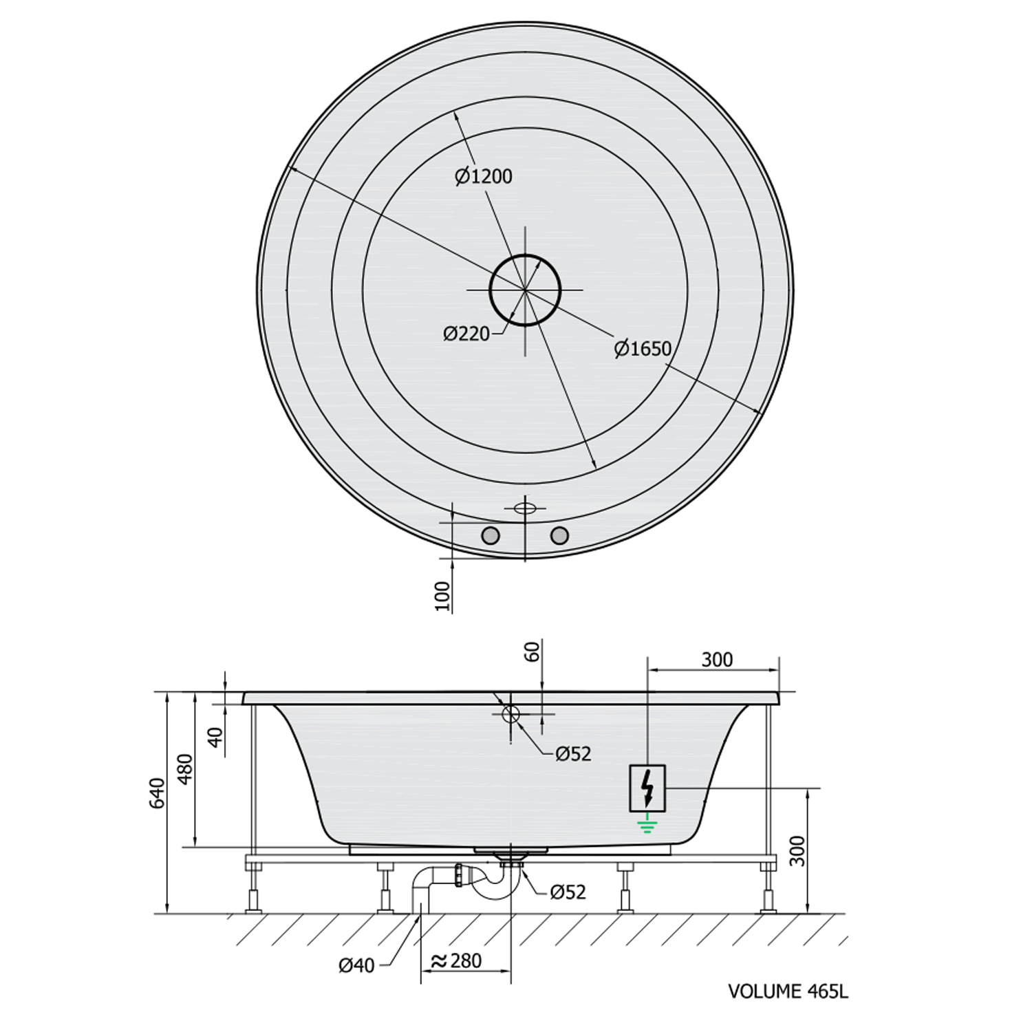 • Easy to install (like standard baths + electric supply)