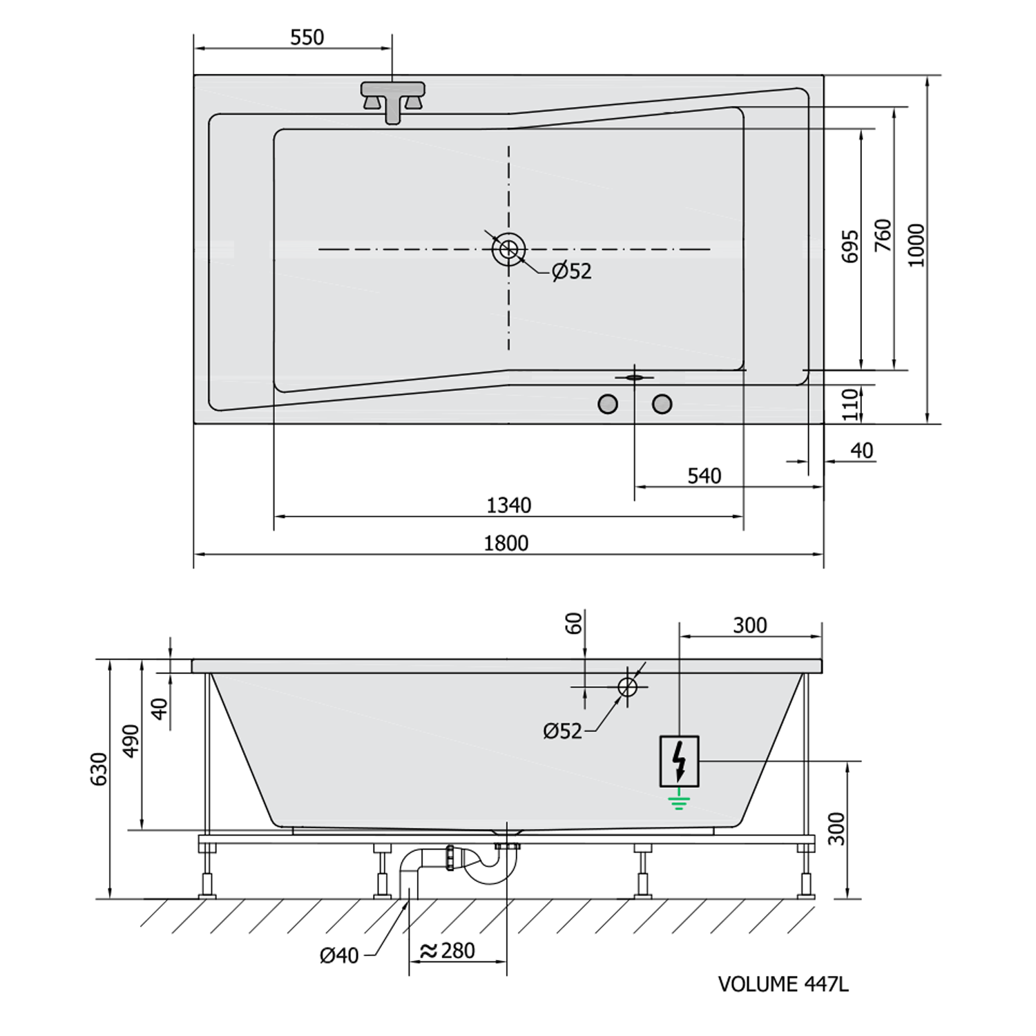 95611.5010 POLYSAN CLEO kád, Highline Hydro, 180x80x48cm, króm
