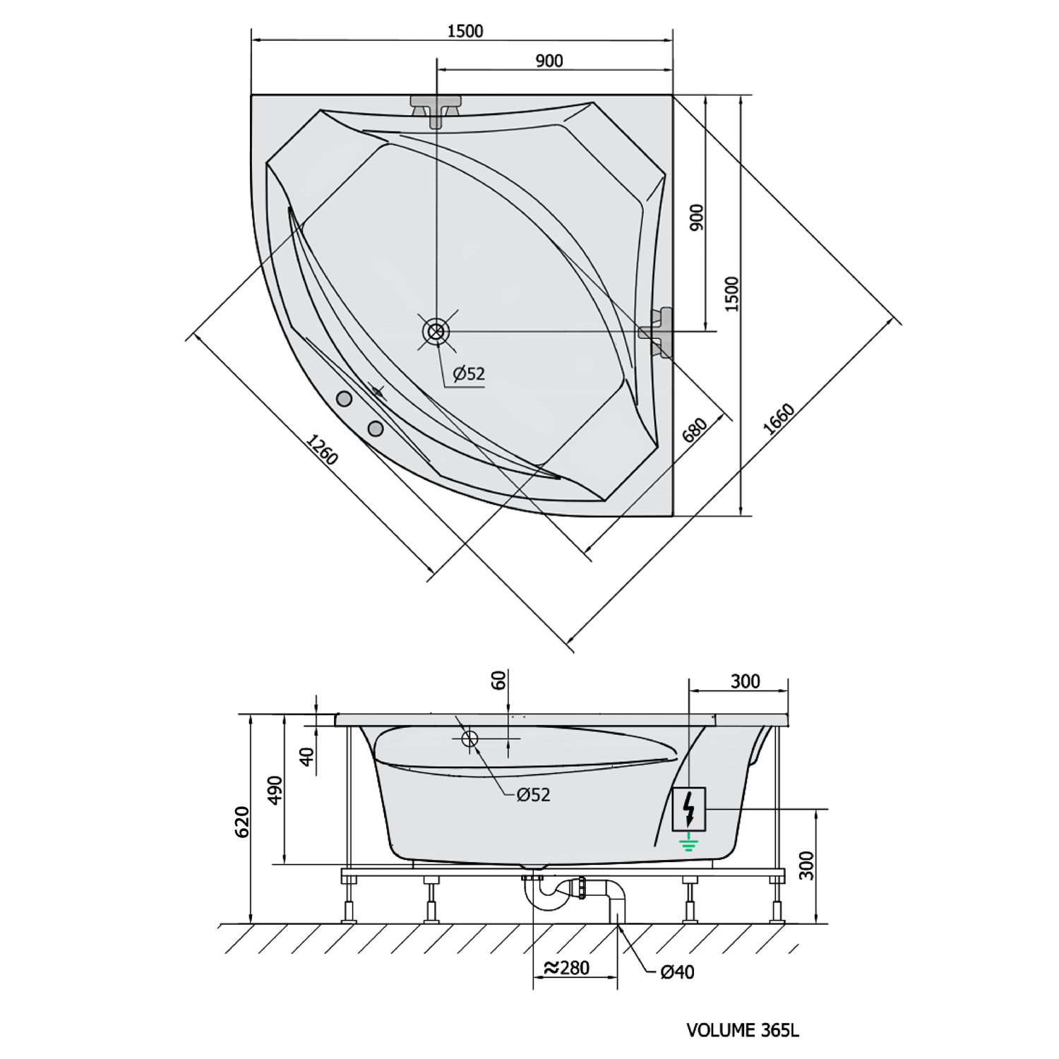 • Easy to install (like standard baths + electric supply)