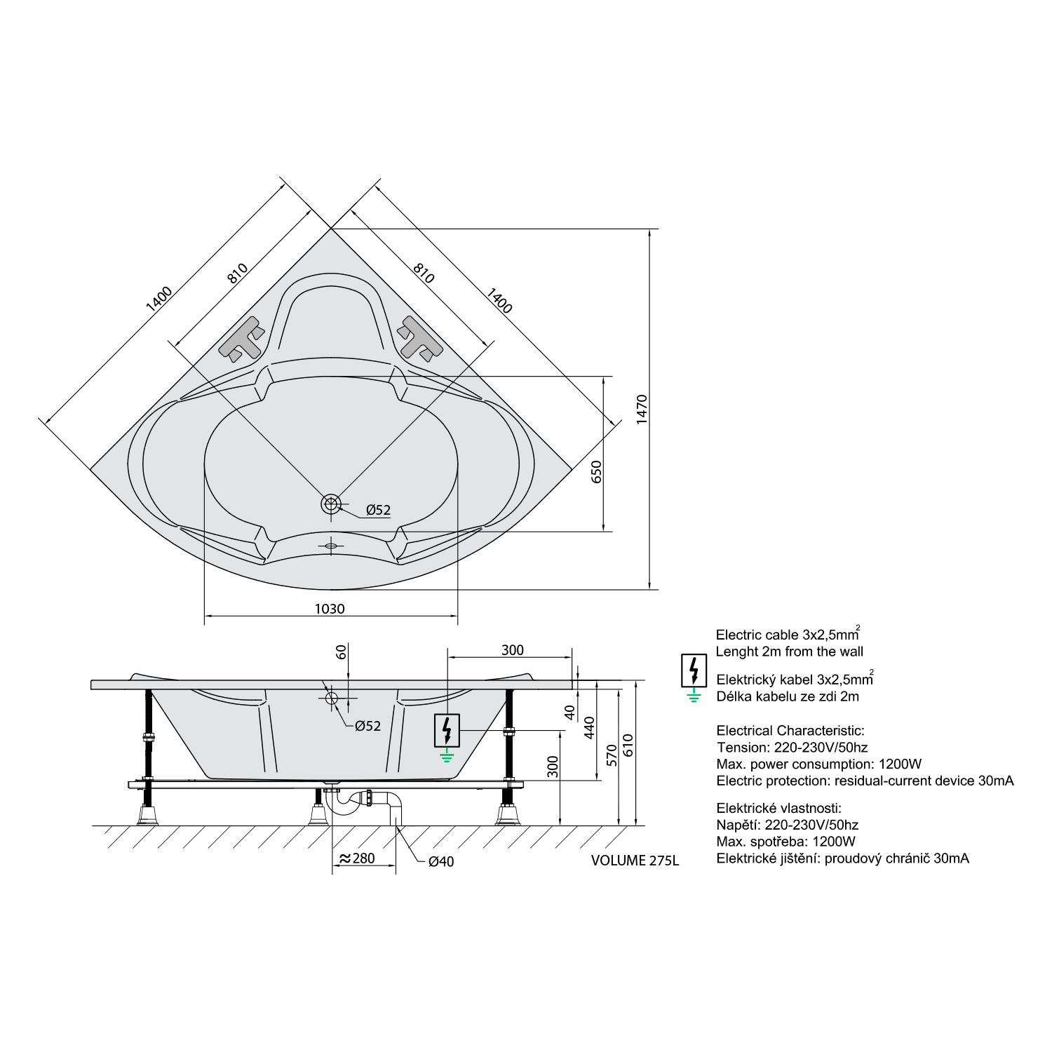 • Easy to install (like standard baths + electric supply)