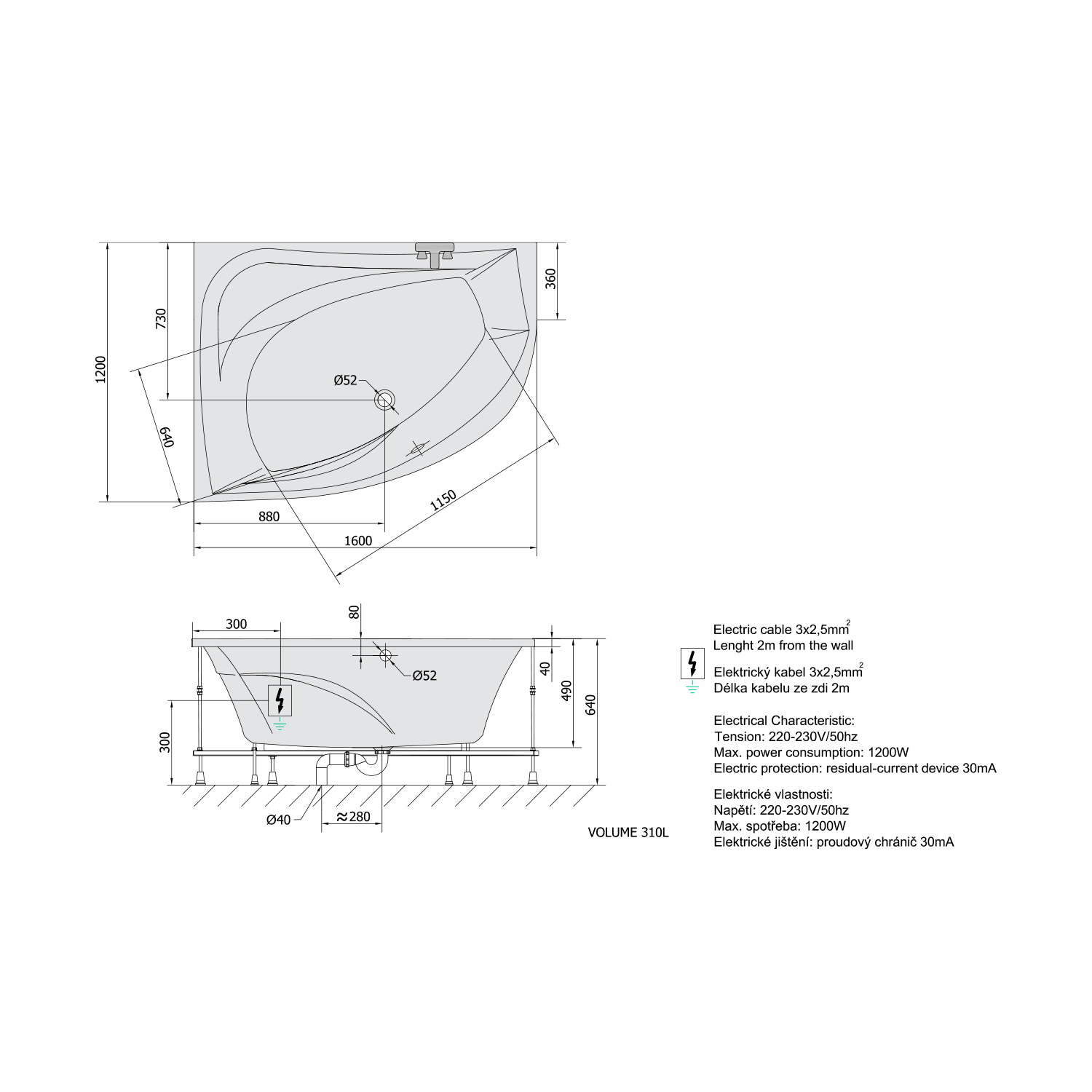 • Easy to install (like standard baths + electric supply)