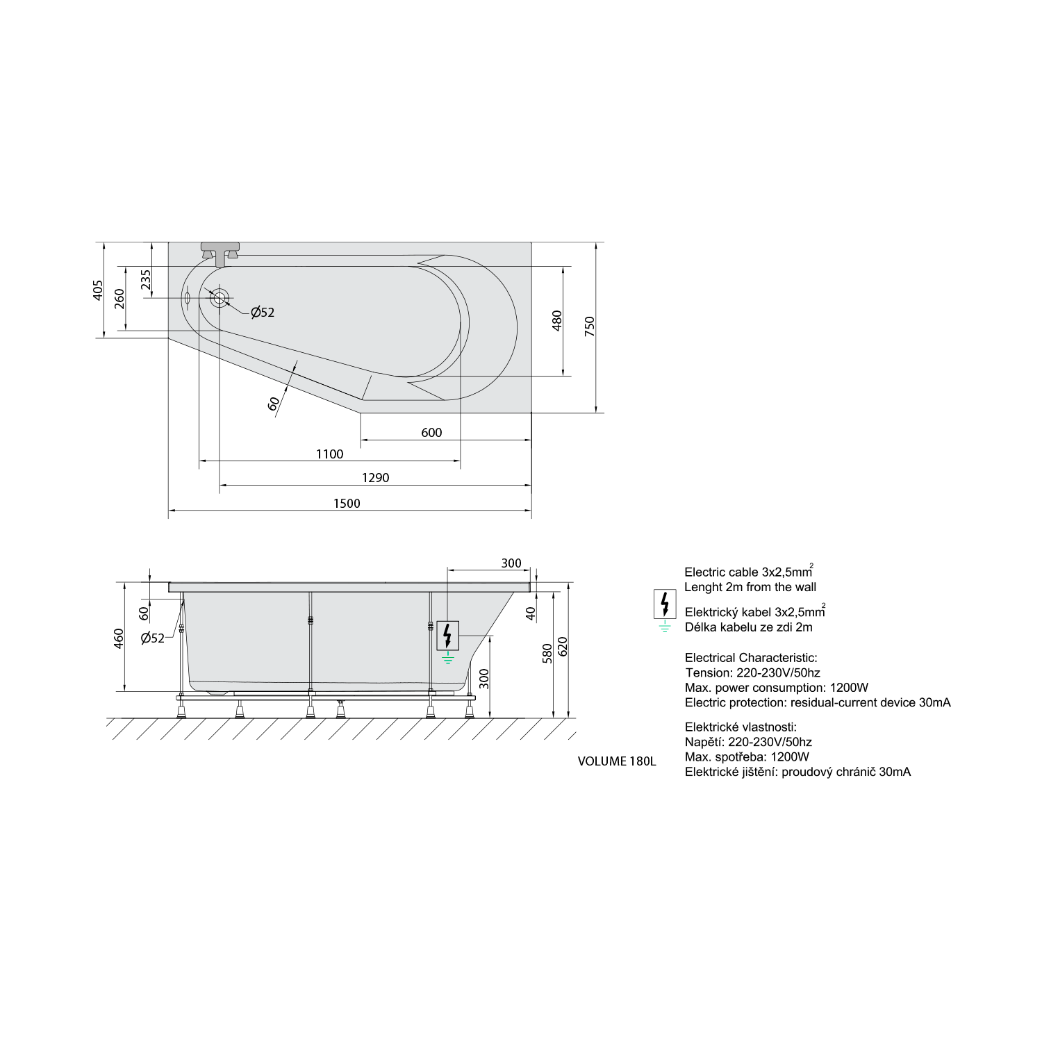 • Easy to install (like standard bathtubs + electric supply)