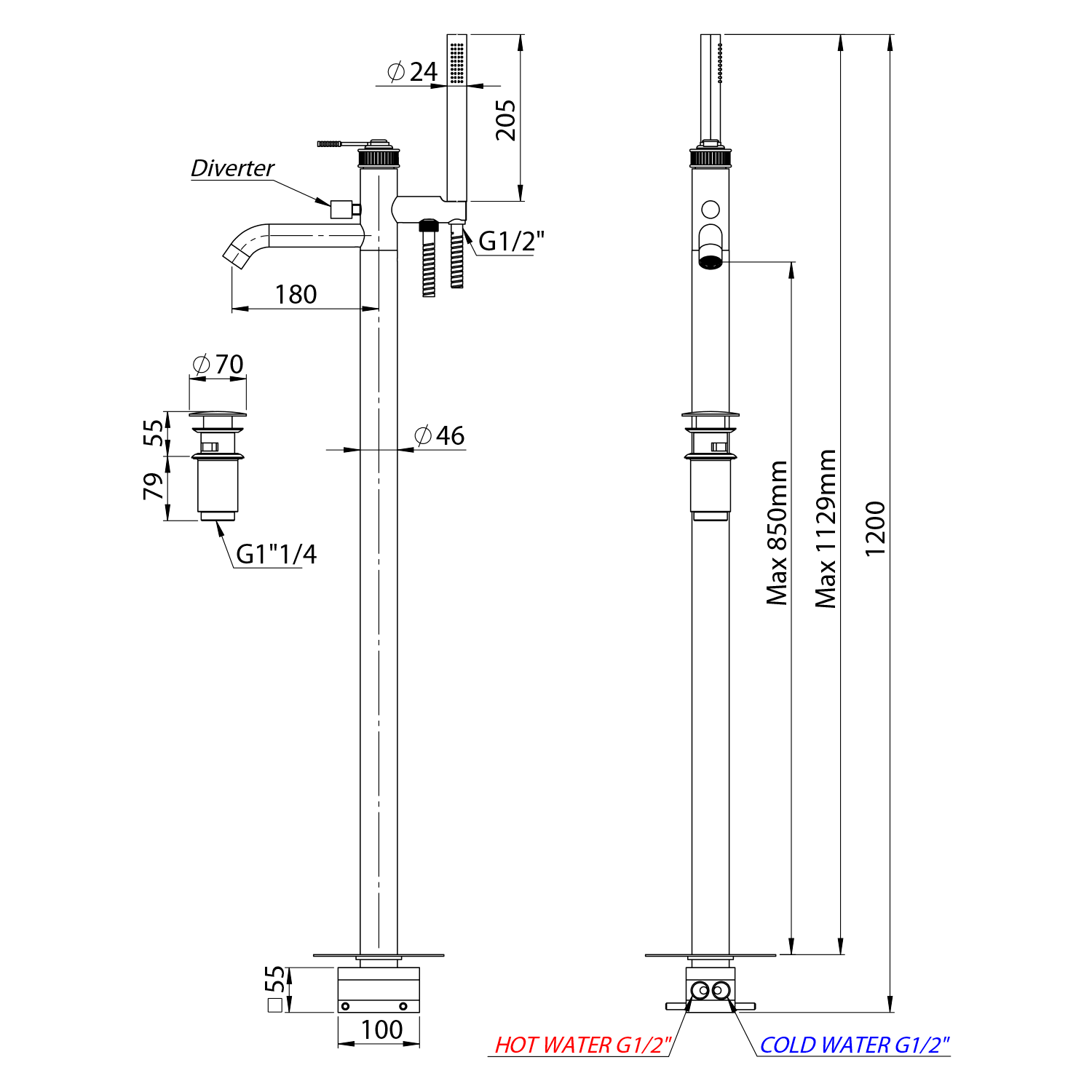 RV021/15 VERSI térbenálló kádtöltő csaptelep, matt fekete