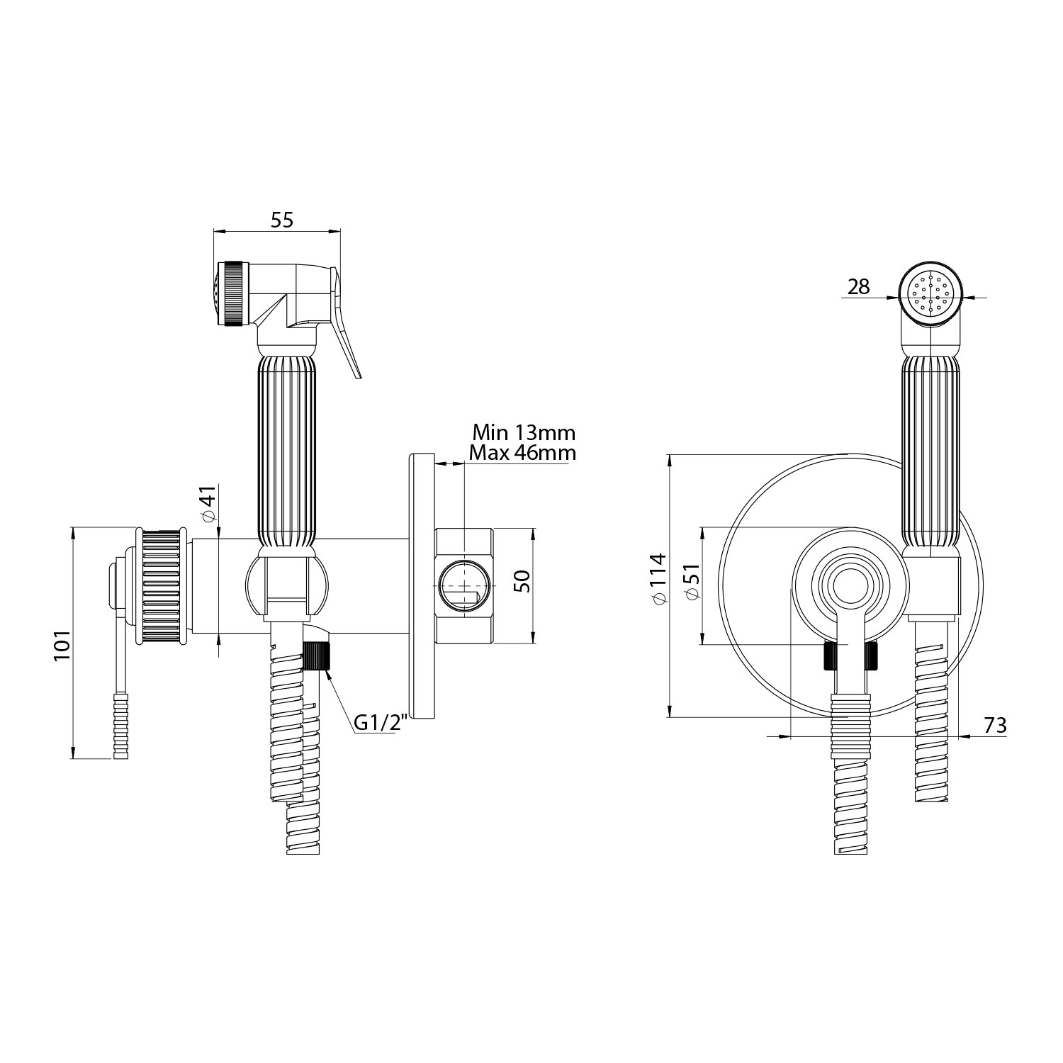 RV013/15 VERSI falsík alatti bidézuhany, kézizuhannyal és gégecsővel, matt fekete