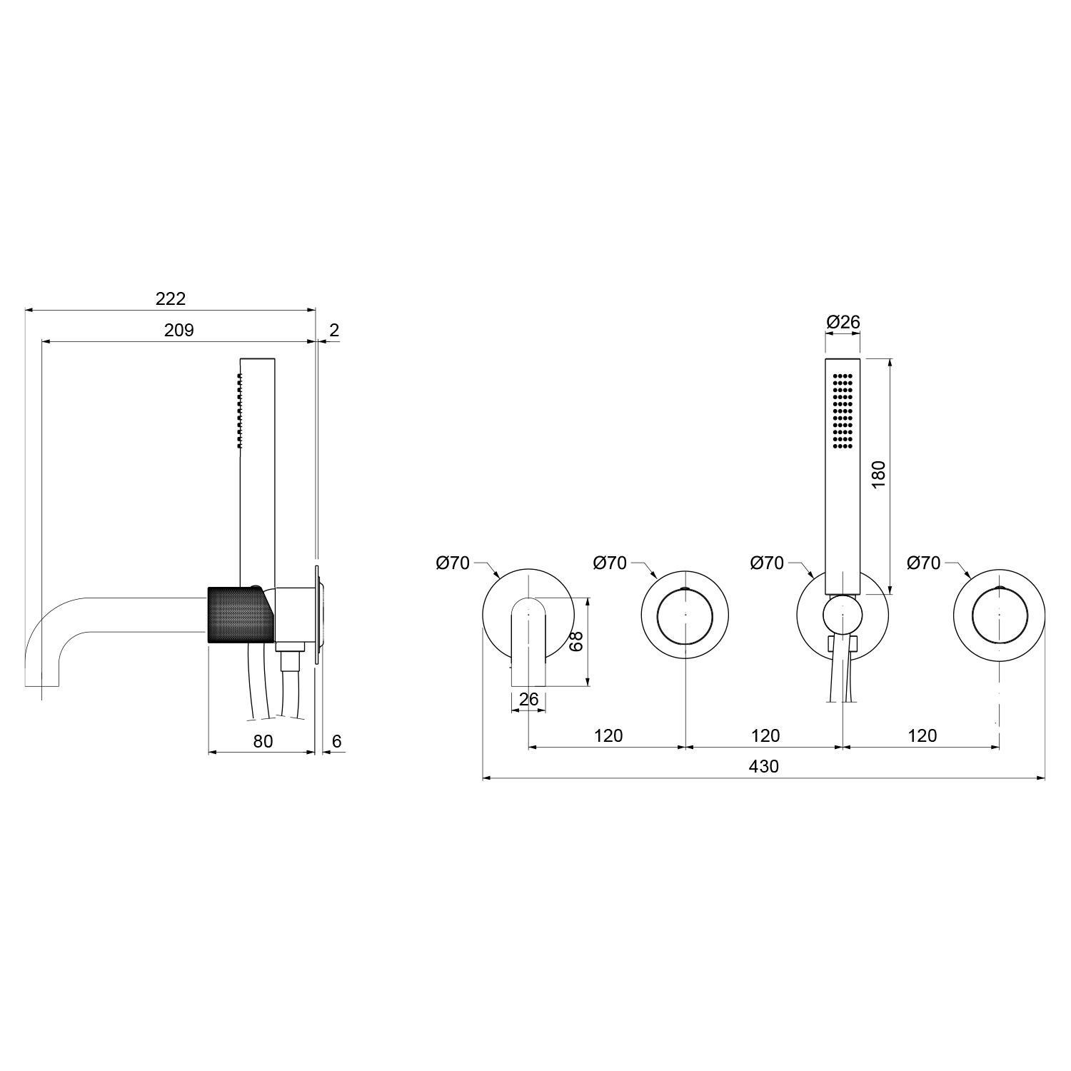 UT093T ULTRATAP falbasüllyeszthető csaptelep, kifolyócsővel és kézizuhannyal, 2-irányú, króm