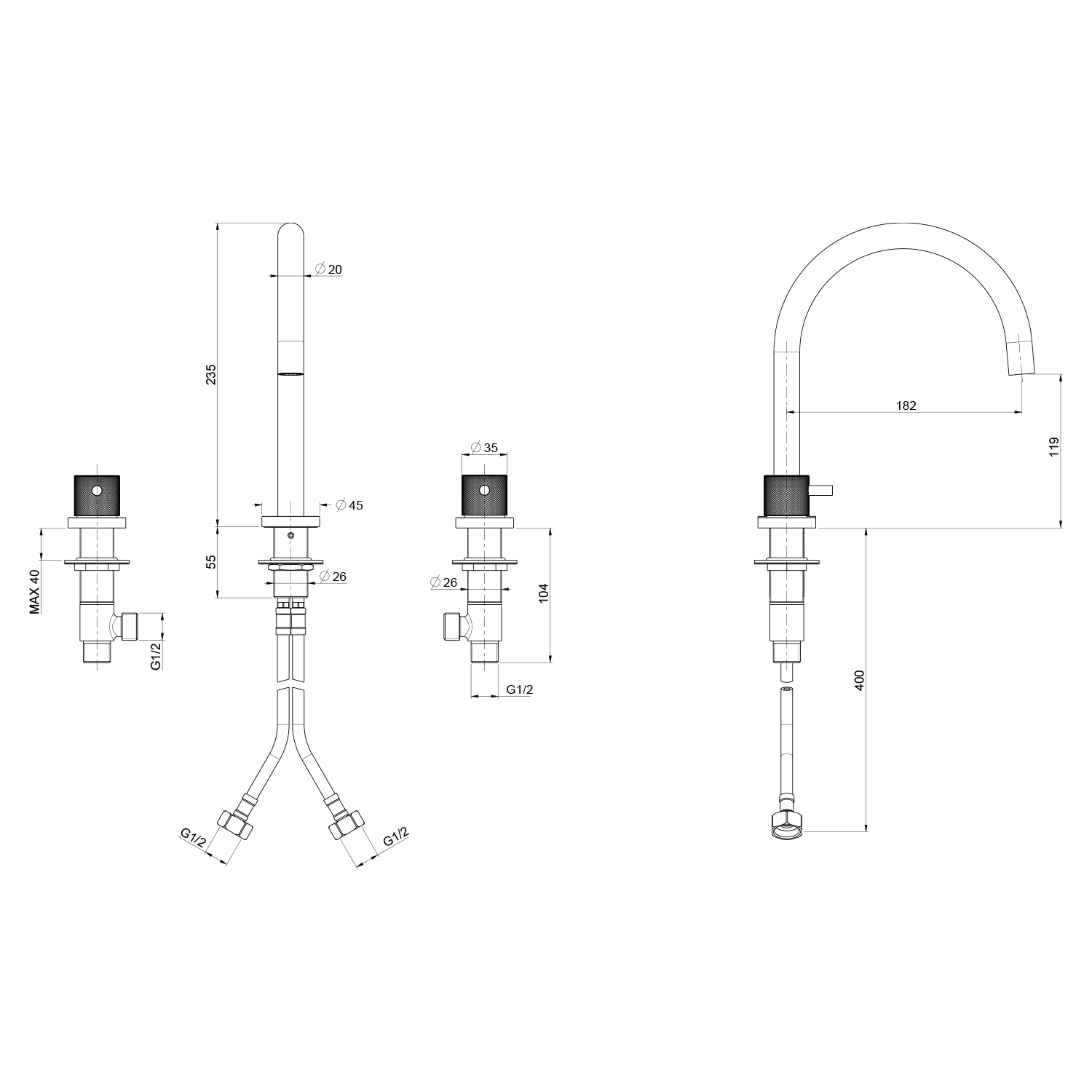 UT007VBC ULTRASAN álló magasított mosdócsaptelep, hosszú kifolyócsővel, matt fekete/króm
