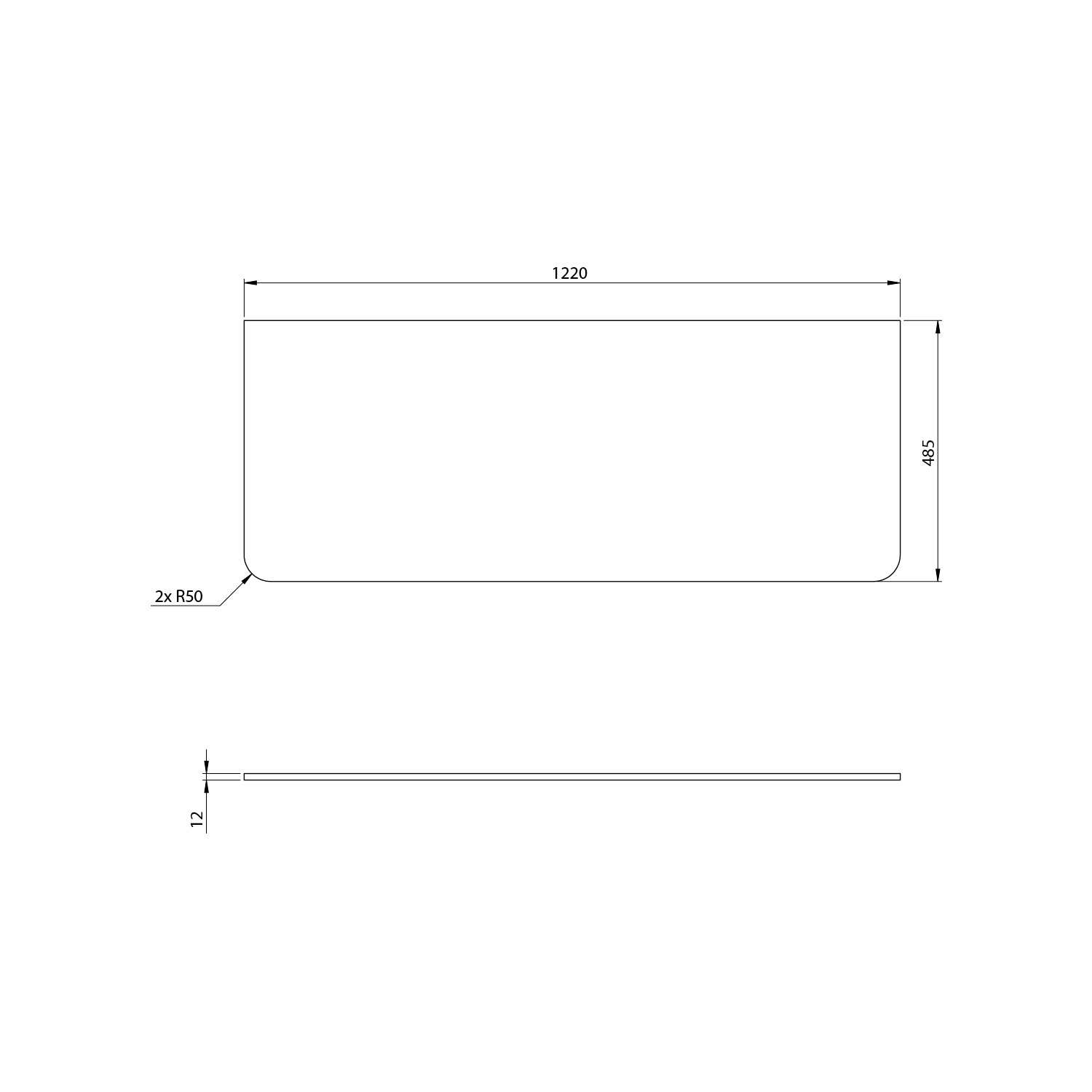 PREMIO kompozit pult, 122x1,2x48,5cm, matt fekete (PRE120-3535)
