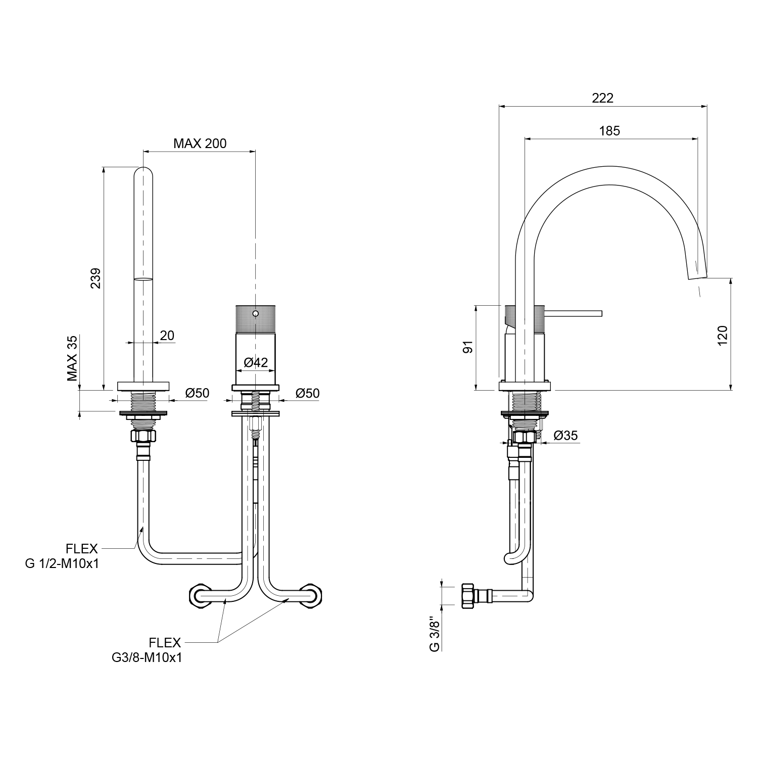 UT007VBC ULTRASAN álló magasított mosdócsaptelep, hosszú kifolyócsővel, matt fekete/króm