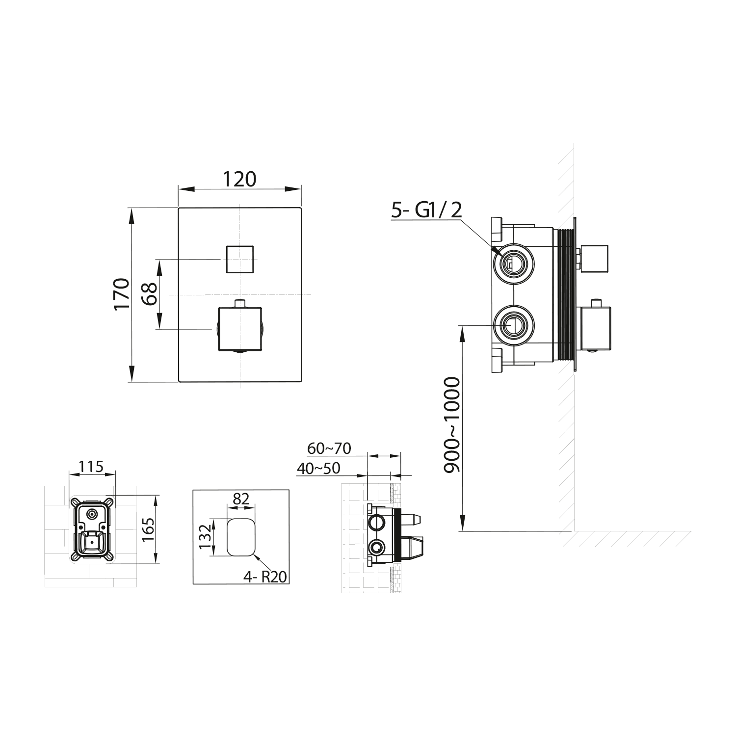 SPECTRE falsík alatti termosztátos zuhanycsaptelep, 3 irányú váltóval, króm (1102-33)
