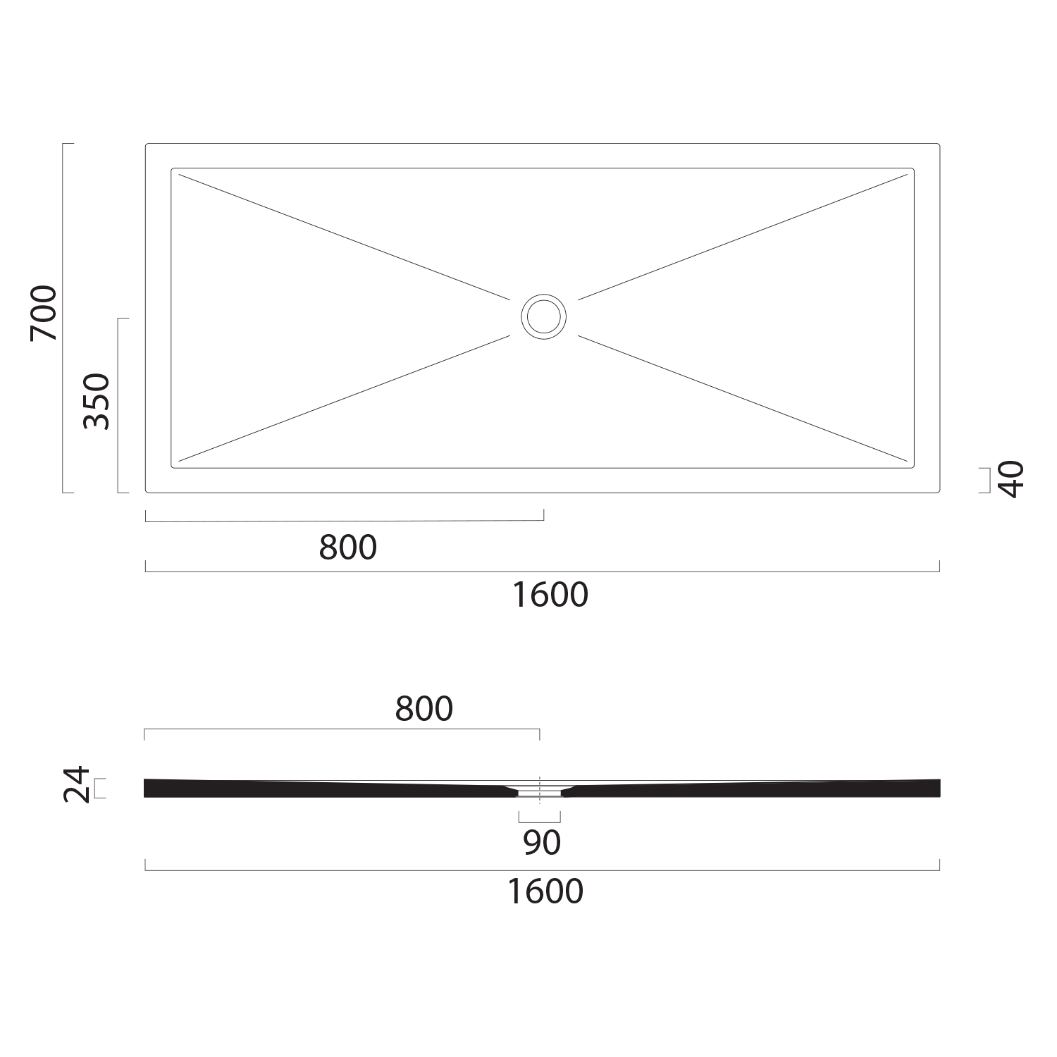 46090726 GSI EXTRA FLAT zuhanytálca, 90x70x2cm, matt fekete