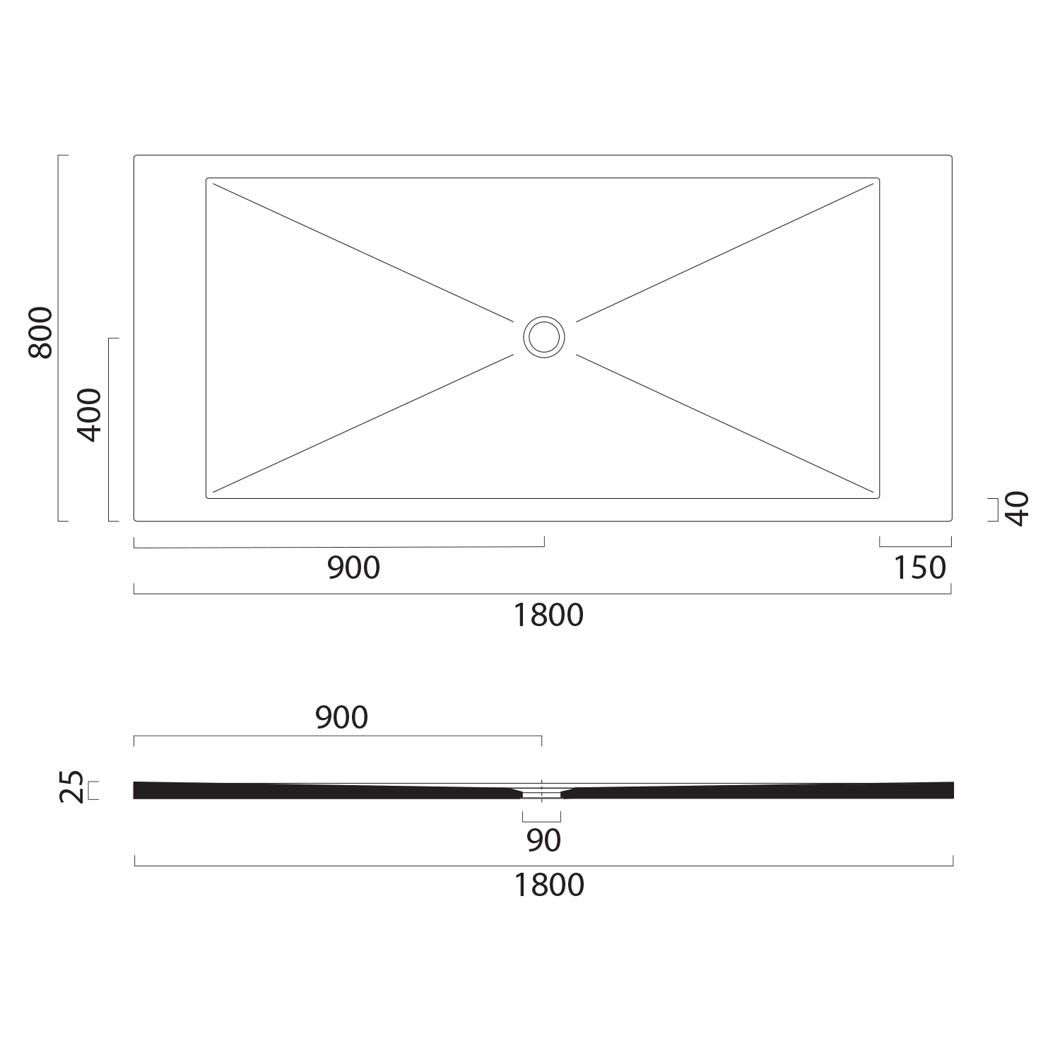 46180926 GSI EXTRA FLAT zuhanytálca, 180x90x2cm, matt fekete