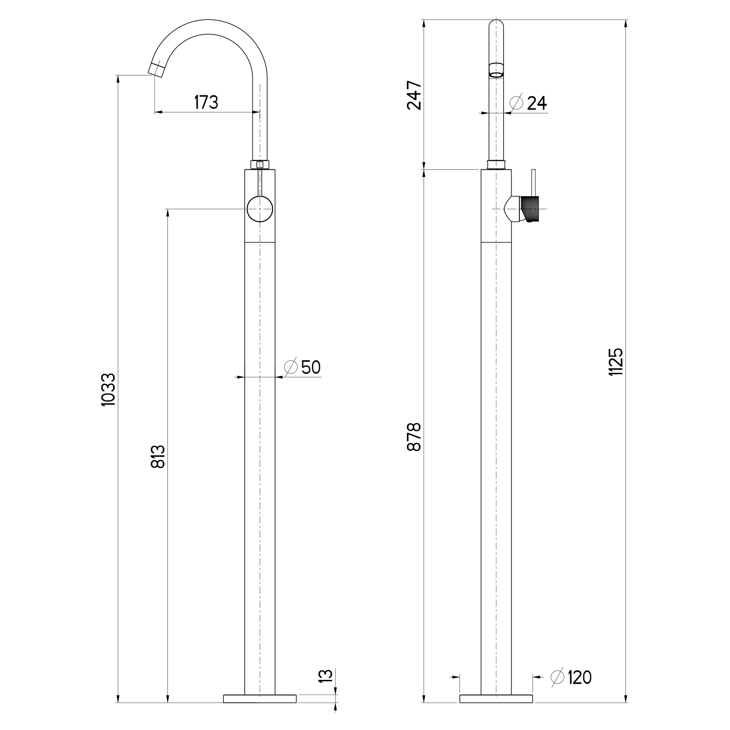 UT021VG ULTRASAN térbenálló kádtöltőcsaptelep, matt arany