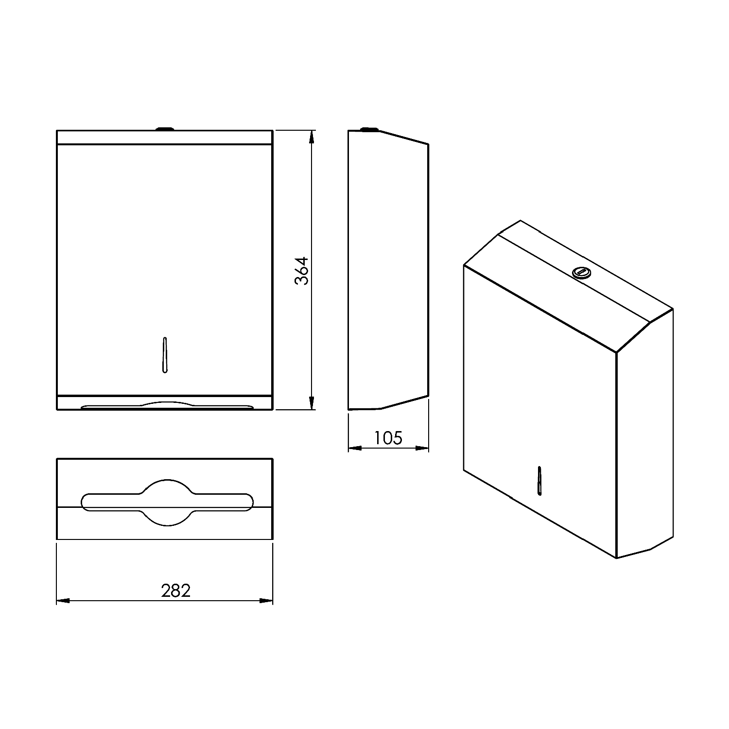 fali papíradagoló, 282x364x105mm, matt fekete (2460)