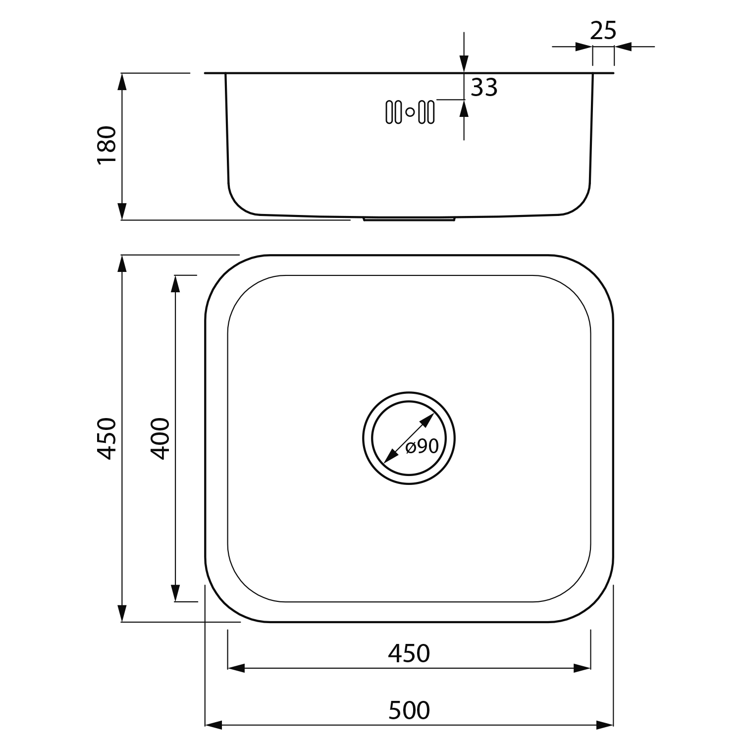 AQUALINE rozsdamentes mosogatótálca, 50x18x45cm (AQ5045)