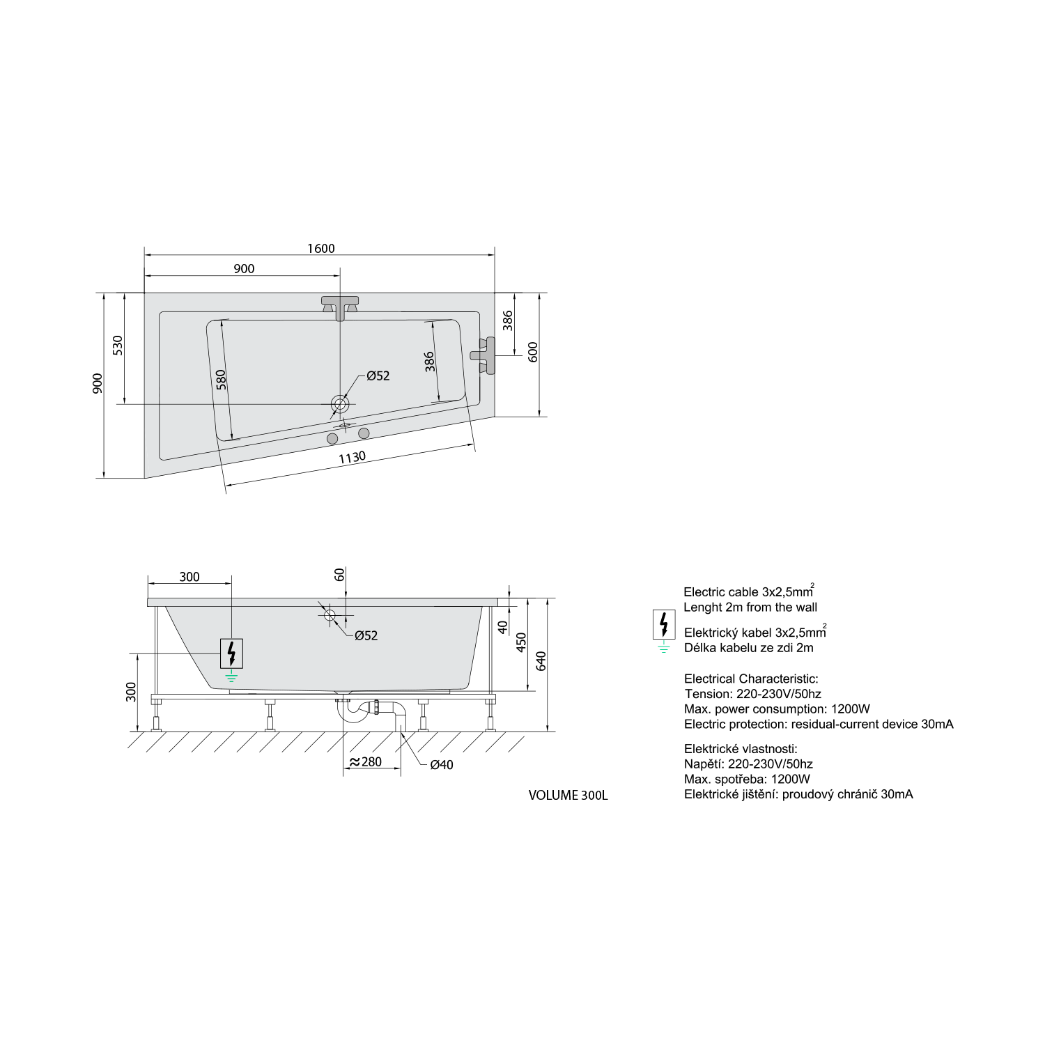 • Easy to install (like standard baths + electric supply)