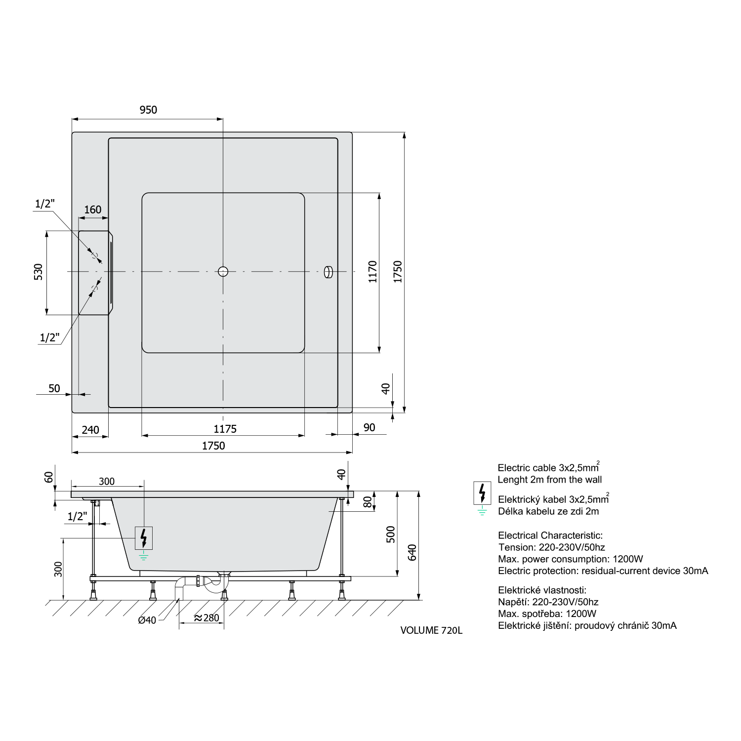 88119.5010 POLYSAN VIVA B kád, Highline Hydro, 175x80x47cm, króm