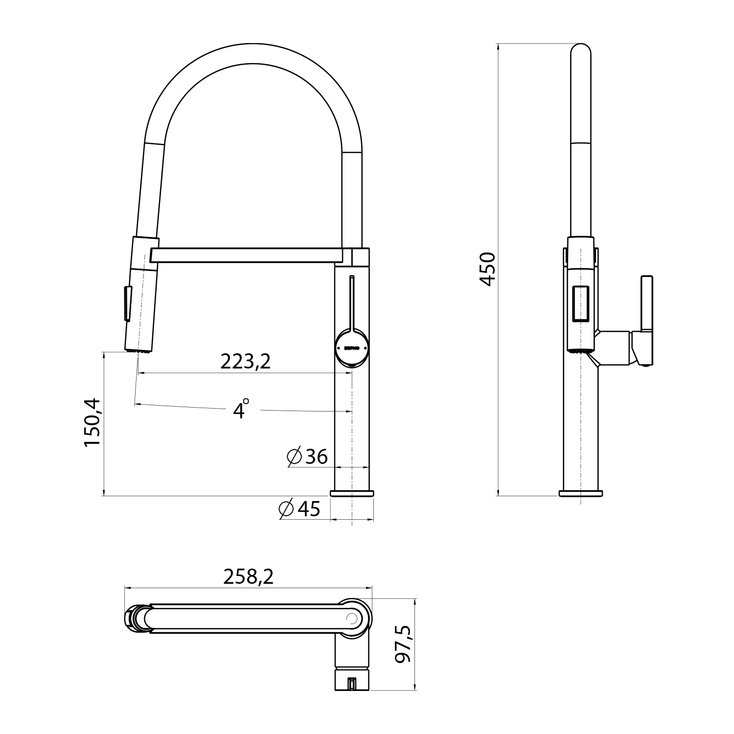 SR426 SILI mosogató-csaptelep, szilikon cső, 224/263/475mm, fekete/króm