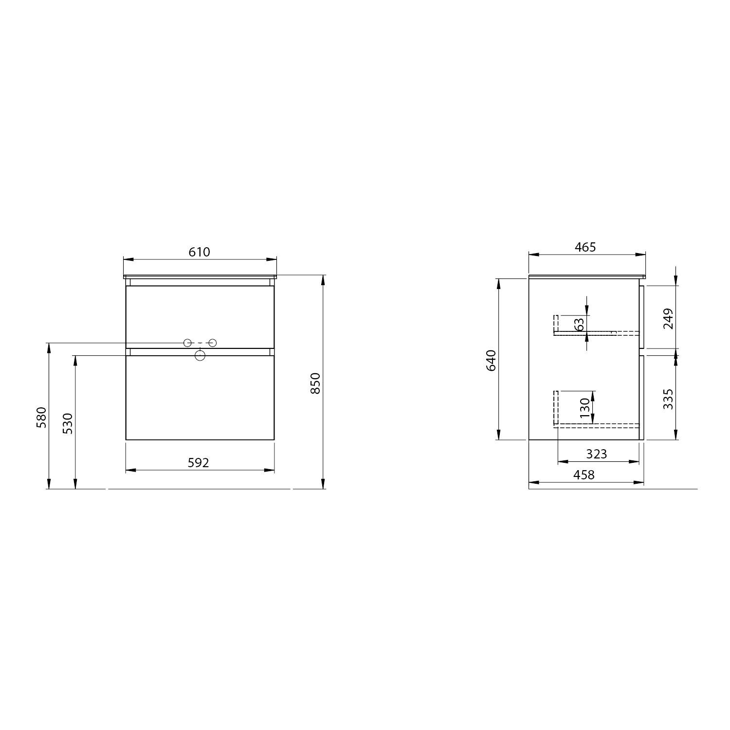 Furniture is equipped travels drawers with slow release and an automatic closing movement drawers. No more noisy closing.