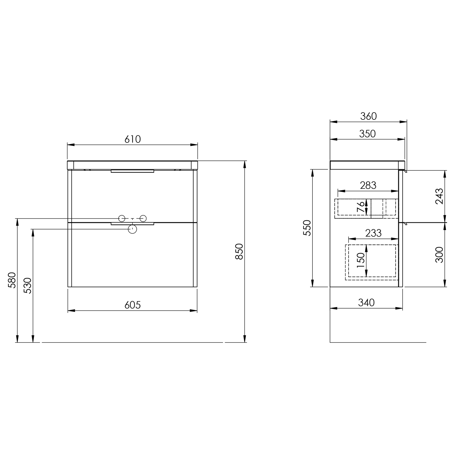 Furniture is equipped travels drawers with slow release and an automatic closing movement drawers. No more noisy closing.