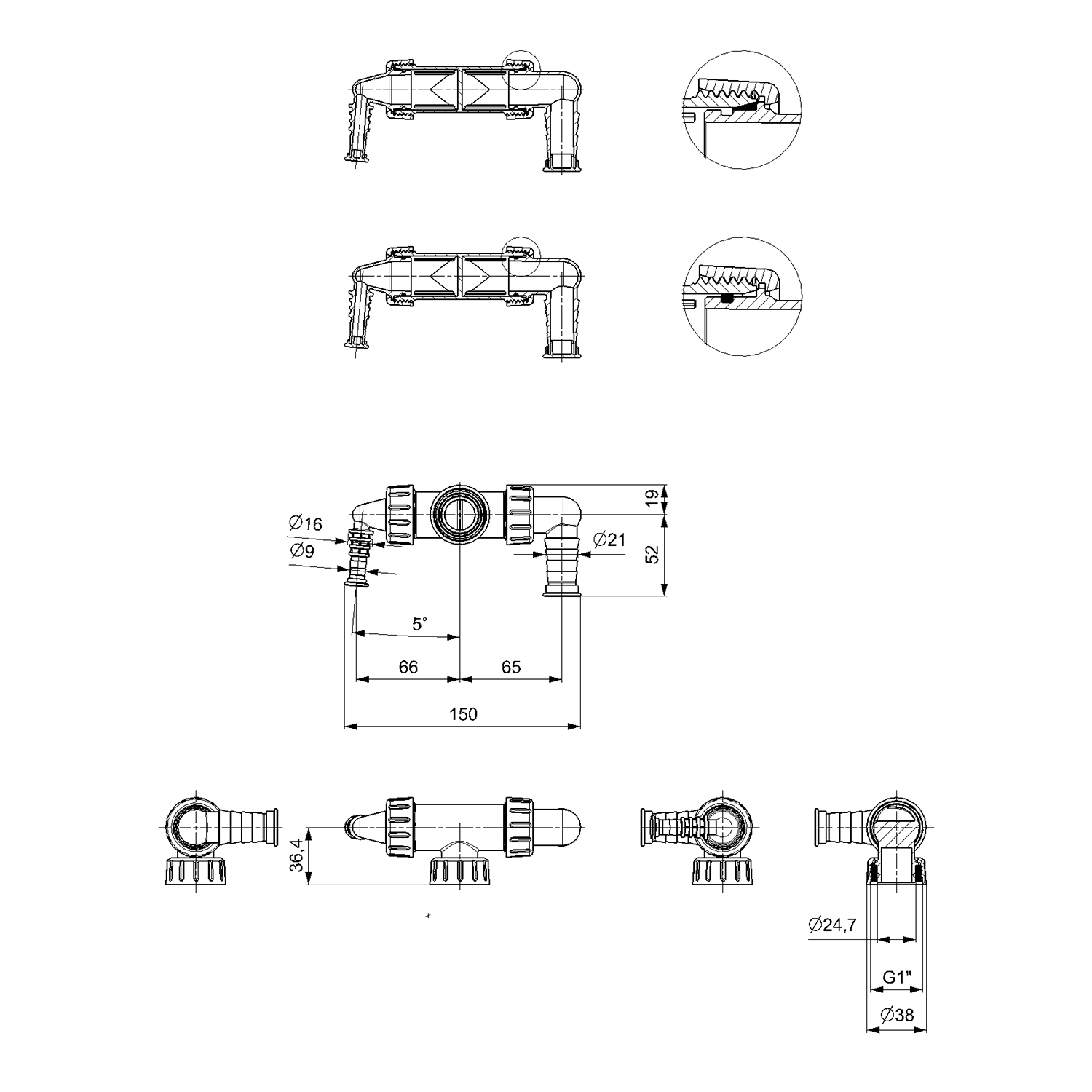 BRUCKNER T bekötőcső mosó és szárítógép csatlakozóval, fehér (168.132.0)